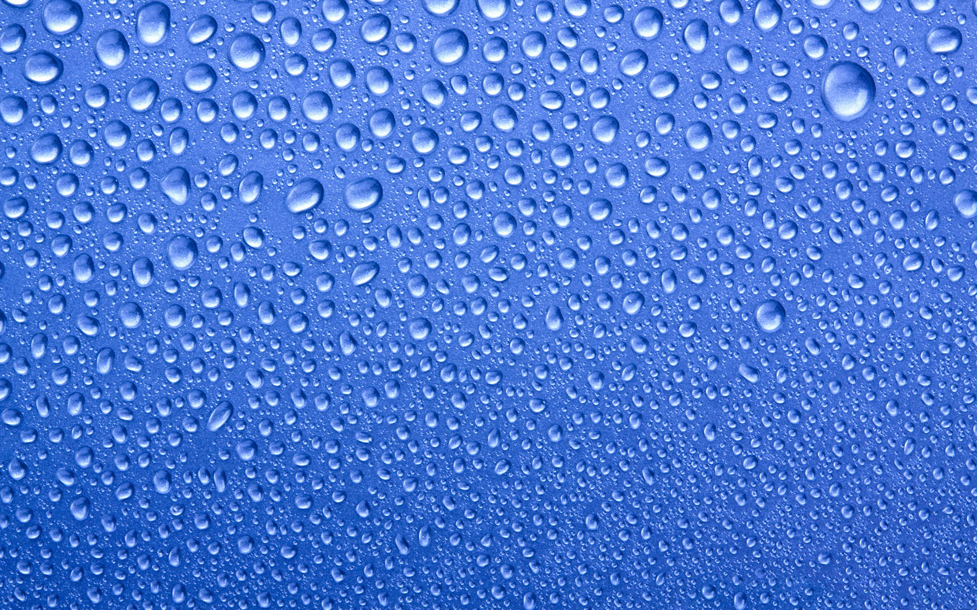 Description: A blue background with water drops on it and a blue sky in the background with a few clouds in the sky.