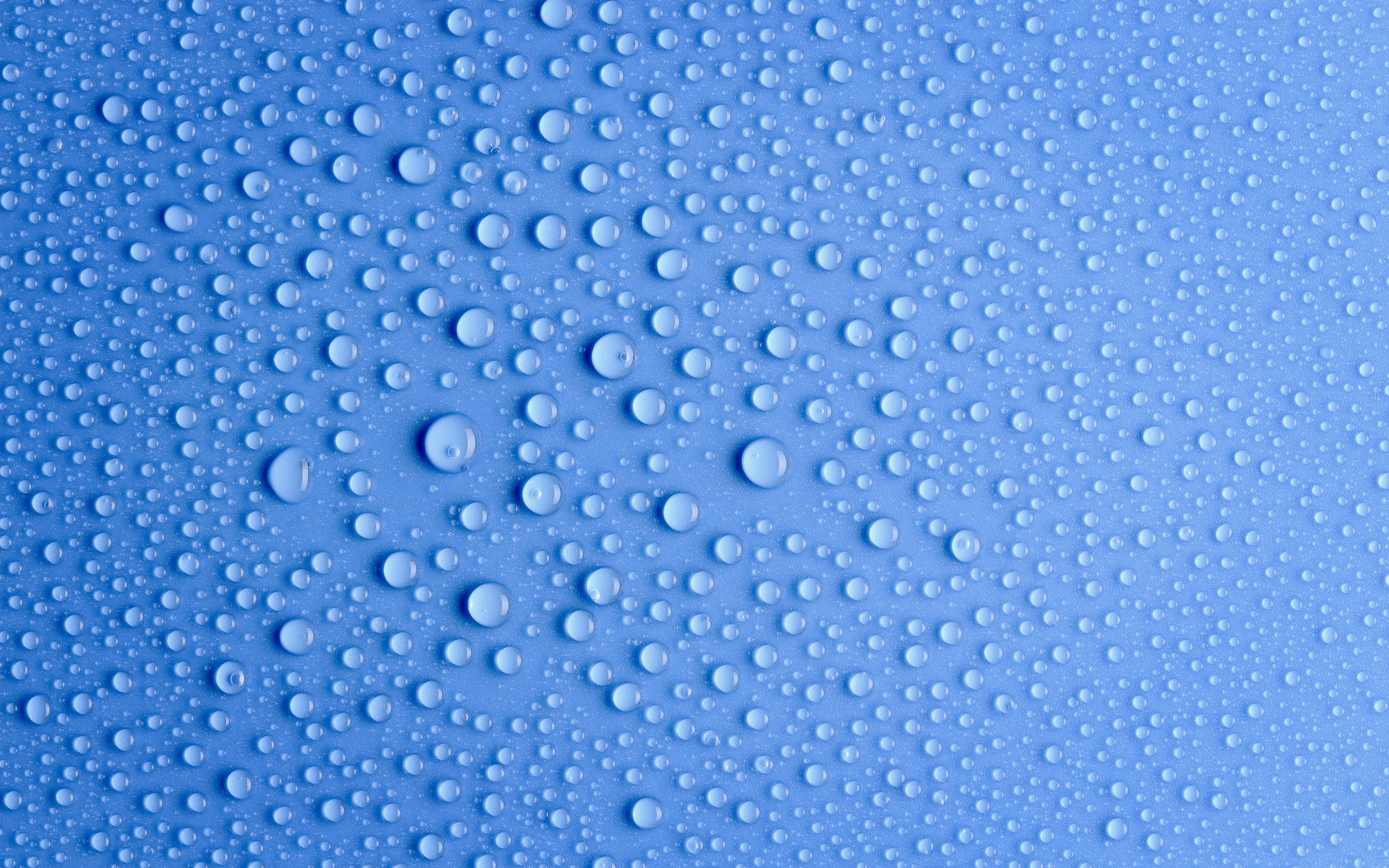 Description: A blue background with water drops on it's surface and a blue sky in the background with a few clouds.