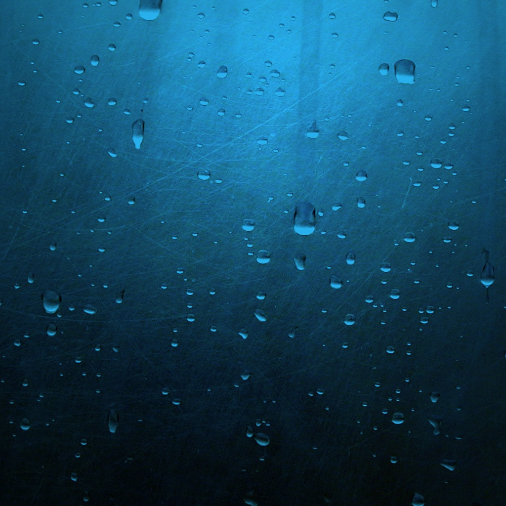 Description: A blue background with water drops and a blue sky in the background with a blue sky and a few clouds.