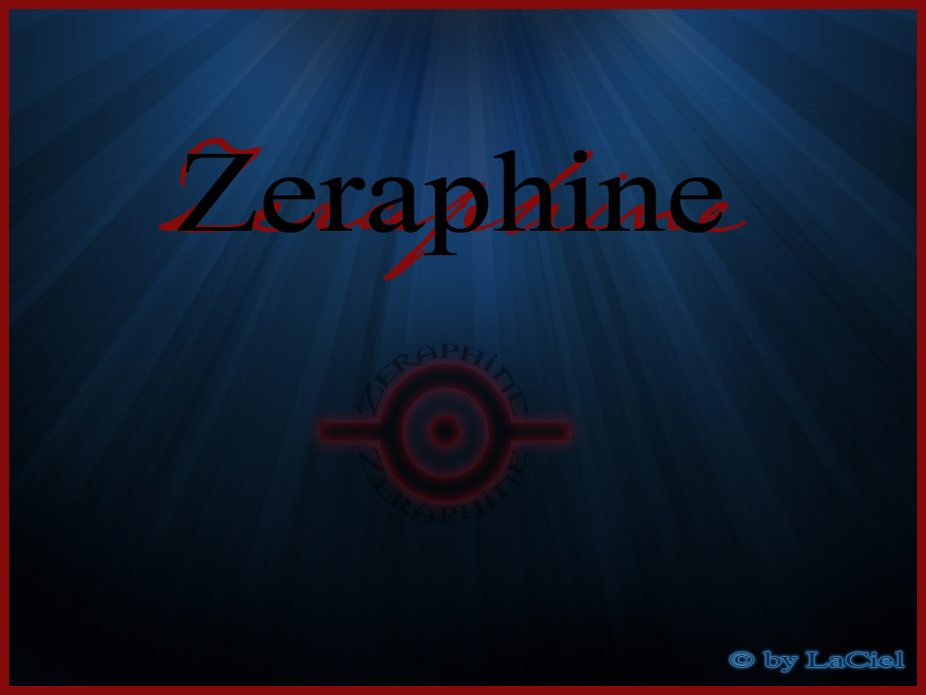 Description: A blue background with the word zeraphine in red and black letters on it.
