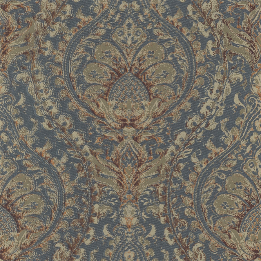 Description: A blue and brown paisley pattern with a brown background and a brown and white design on the bottom of the image.