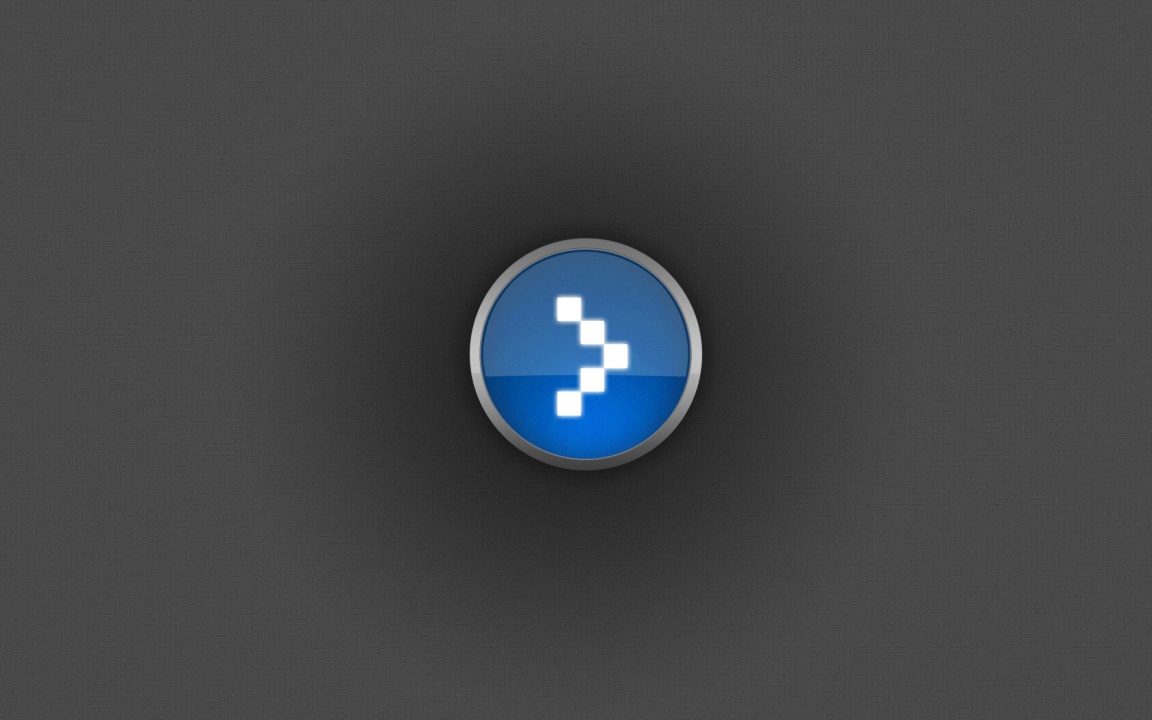 Description: A blue button with a pixelated image of a cross on it's side and a dark background.