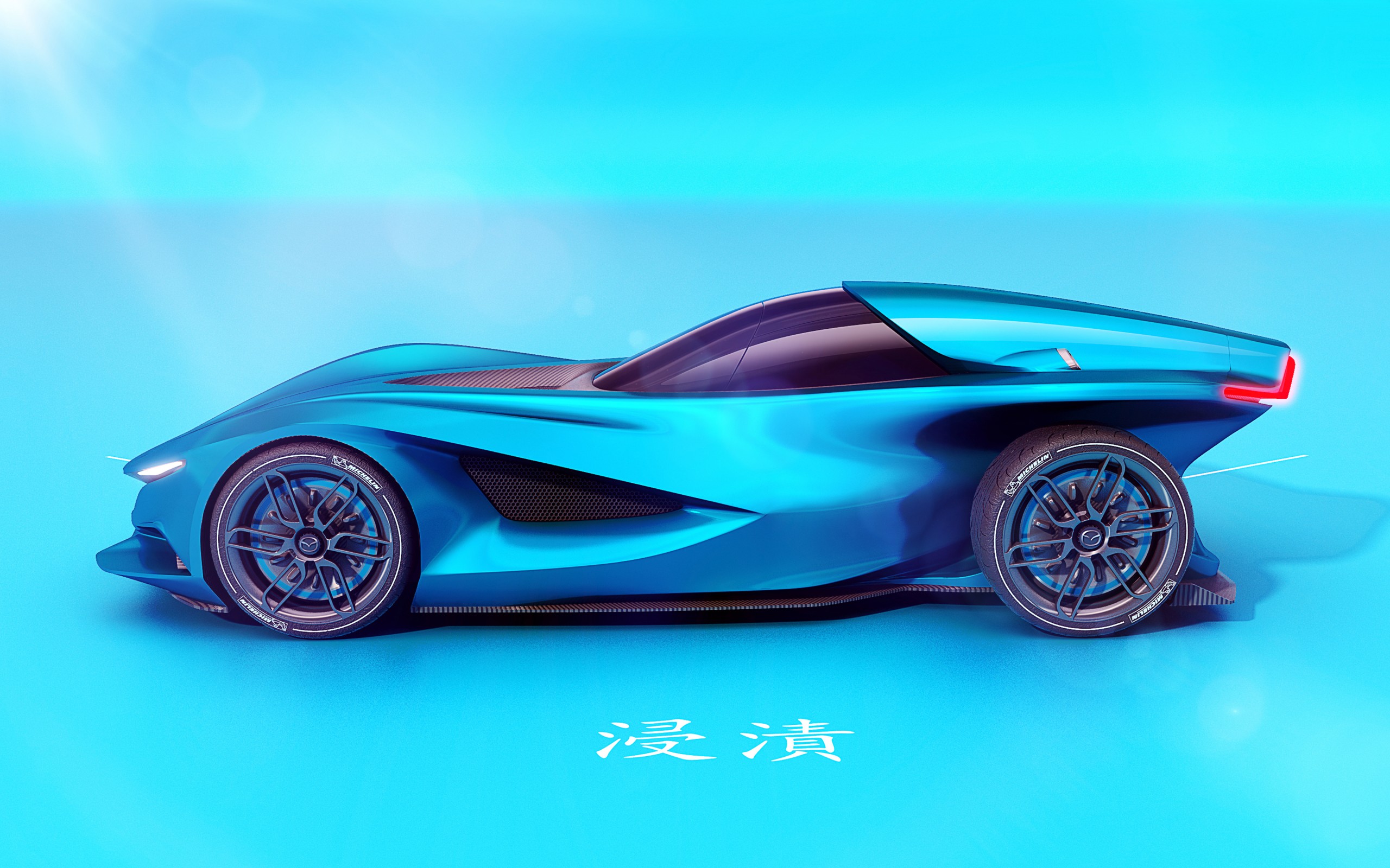 Description: A blue car is shown on a blue background with chinese characters on it and a blue background with a blue background.