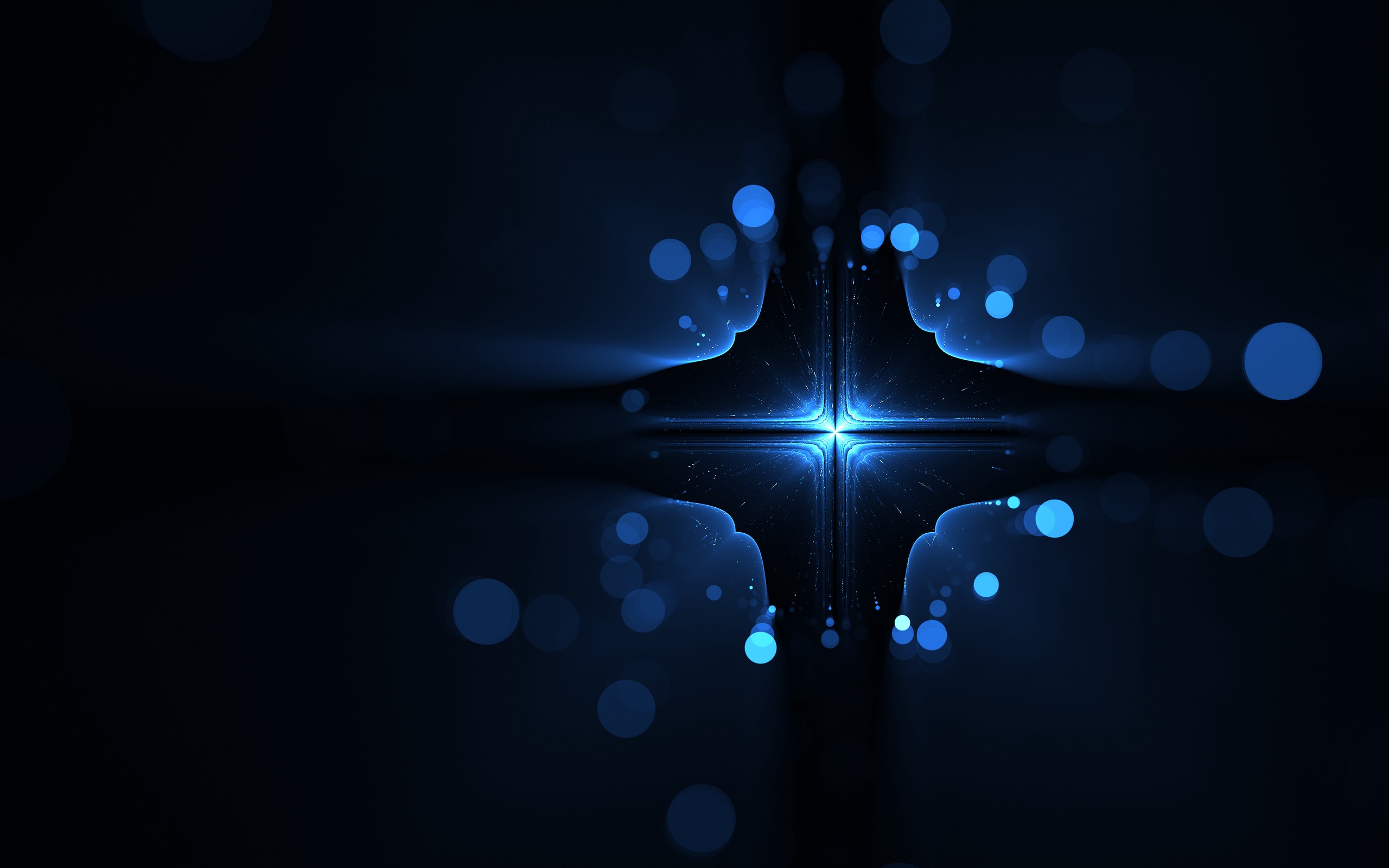 Description: A blue background with a cross on it and some lights on it and a reflection of the cross in the water.