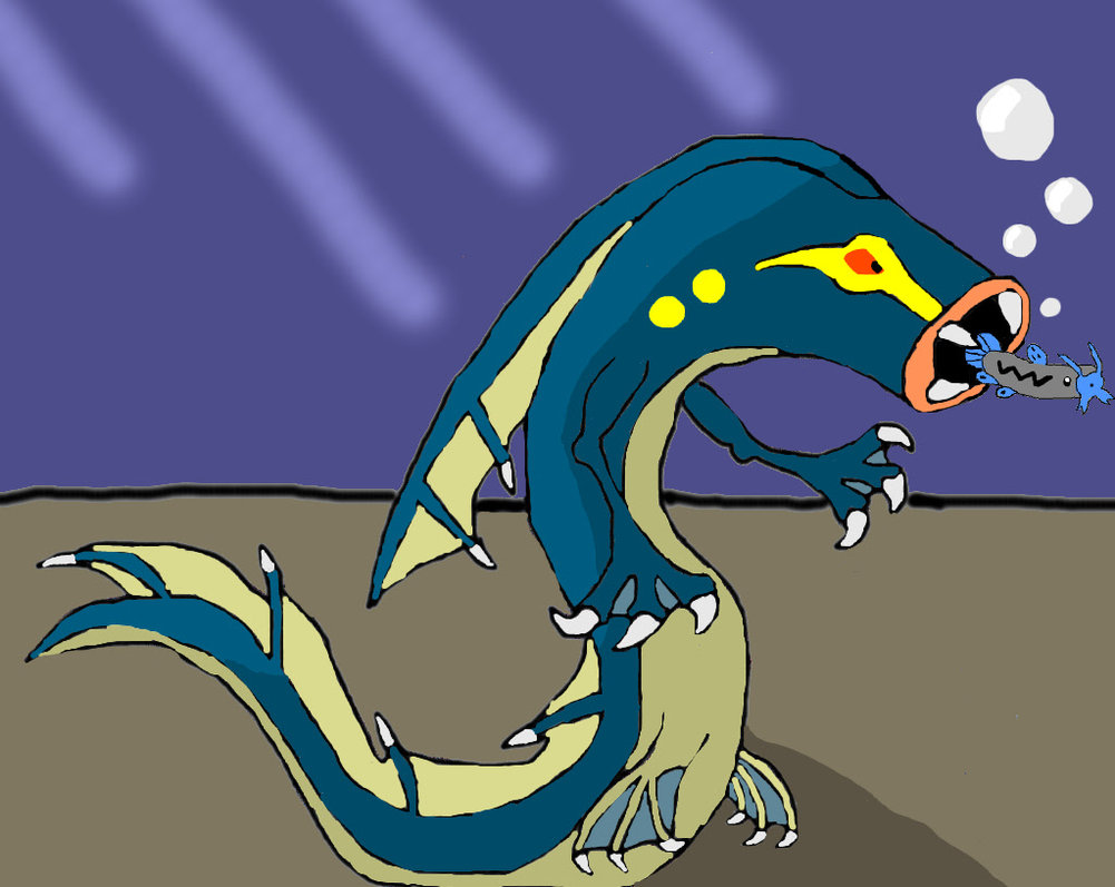 Description: A cartoon of a blue dragon with yellow eyes and a yellow beak and mouth.
