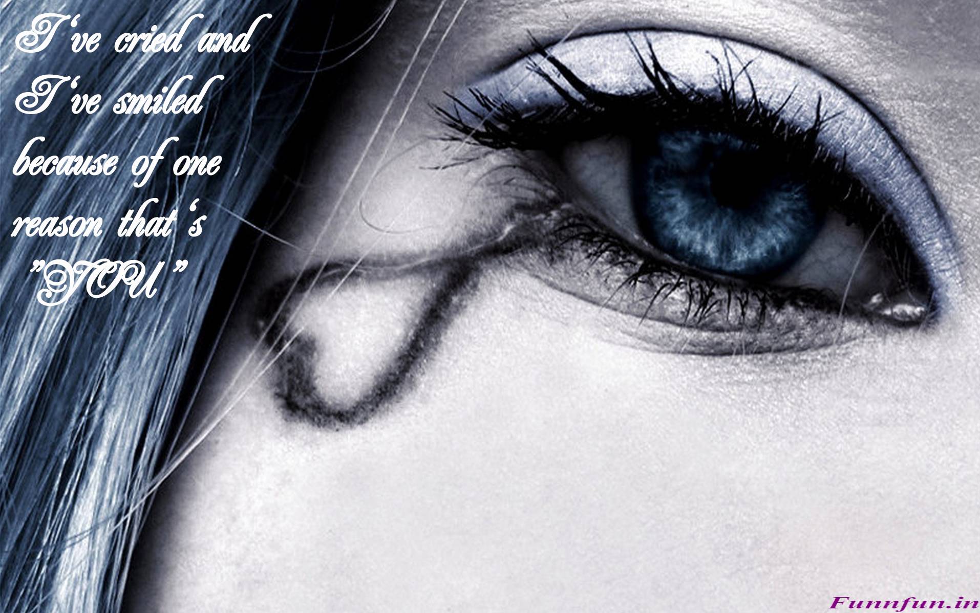 Description: A woman's blue eye with a quote on it that says.
