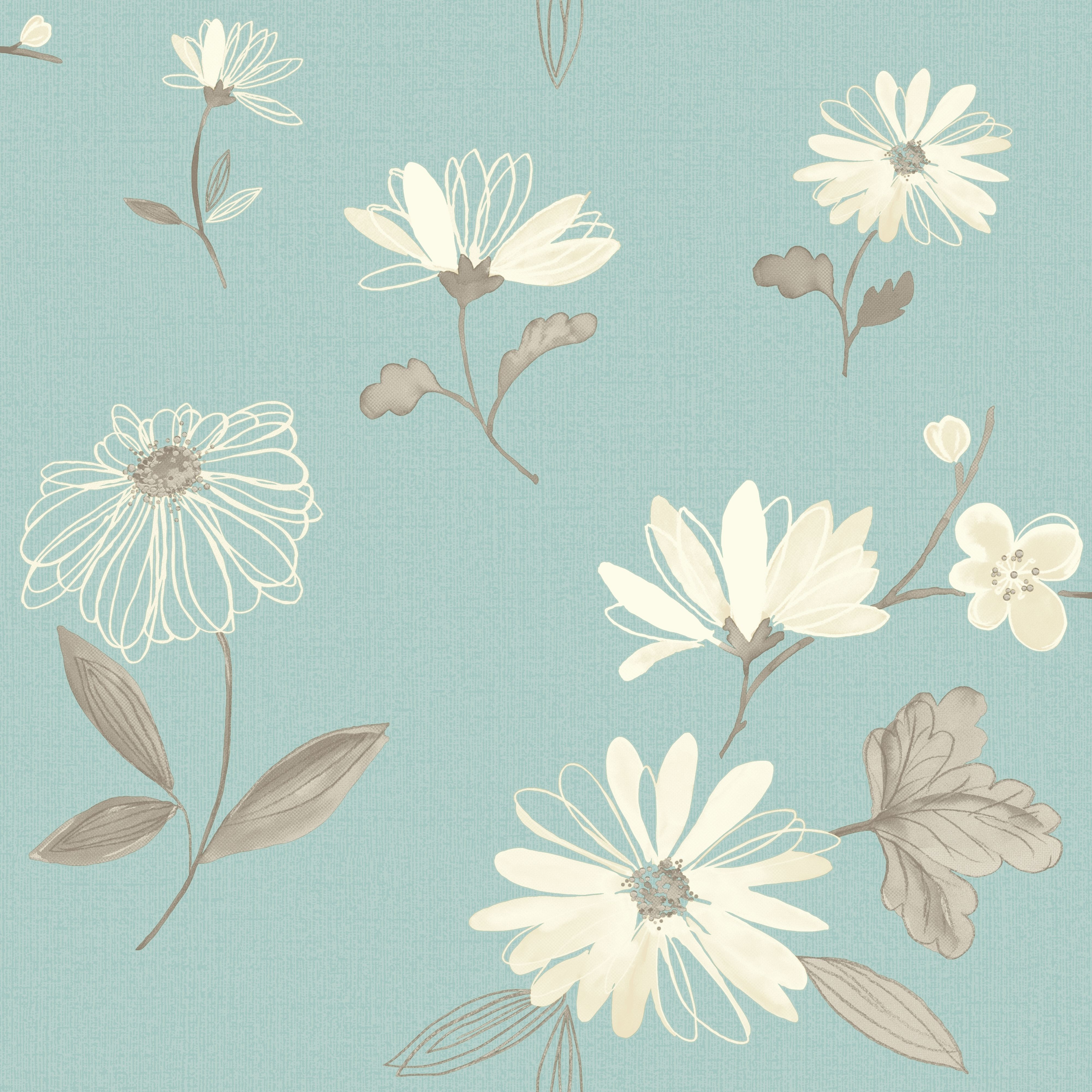 Description: A blue background with a bunch of flowers on it and a few leaves on it.