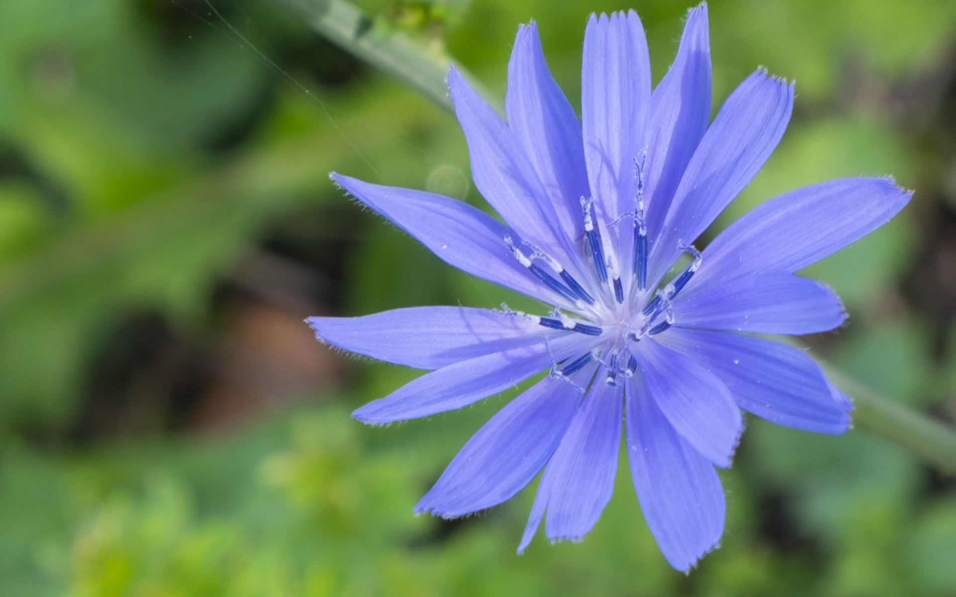 Description: A blue flower with a green background in the background is a blurry image of a flower with a green background.