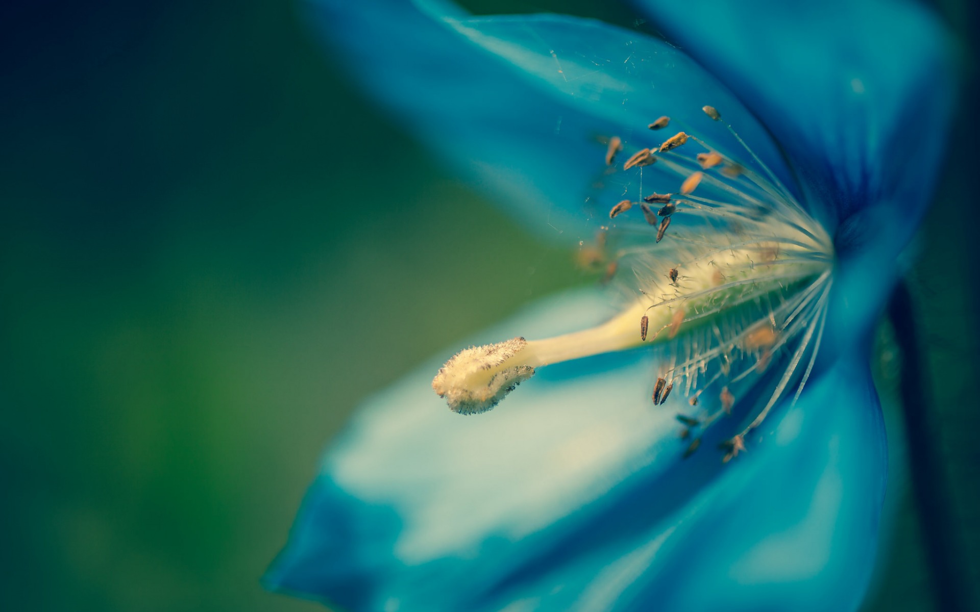 Description: A blue flower with a green background and a blurry background of the flower is blurry and blurry.