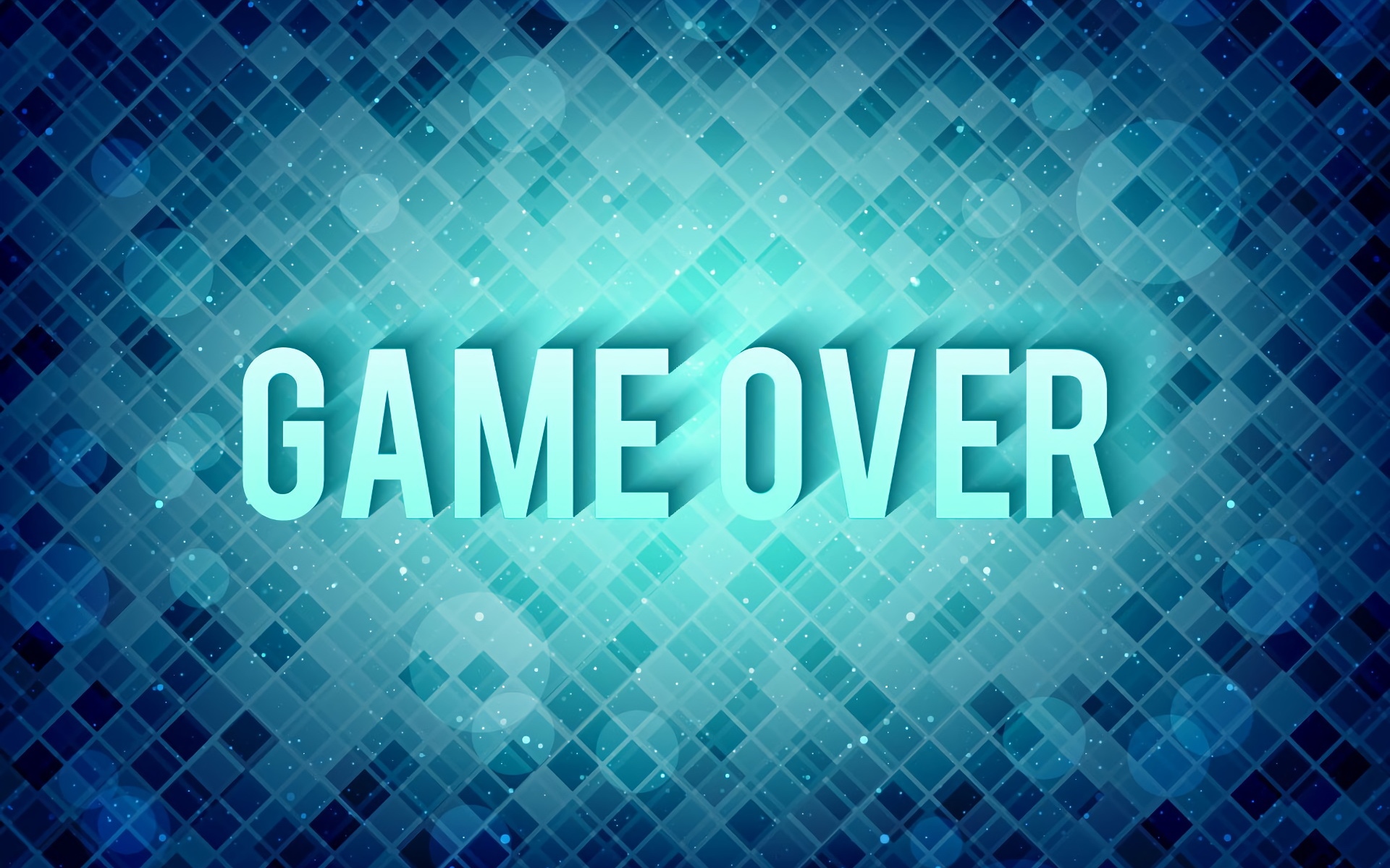 Description: A blue background with the word game over in it's center and a blue mosaic pattern in the background.