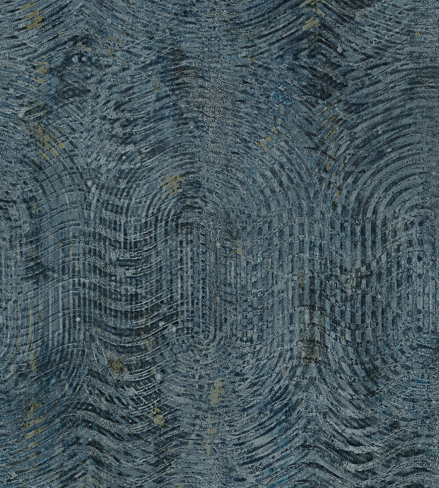 Description: A blue and gold wallpaper with wavy lines and dots on it's surface.
