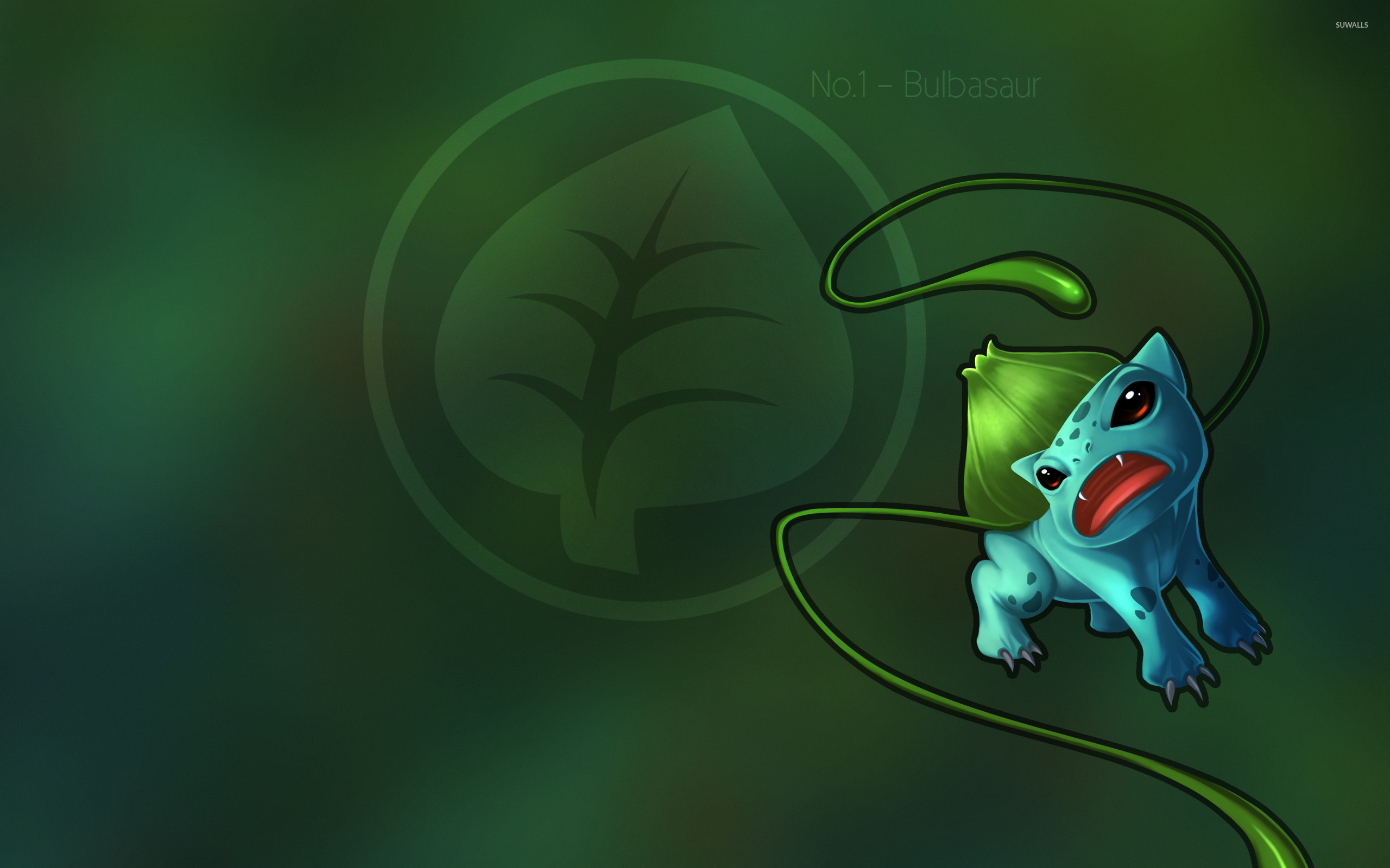 Description: A blue and green cartoon character with a green background and a green leaf on the bottom of the image.