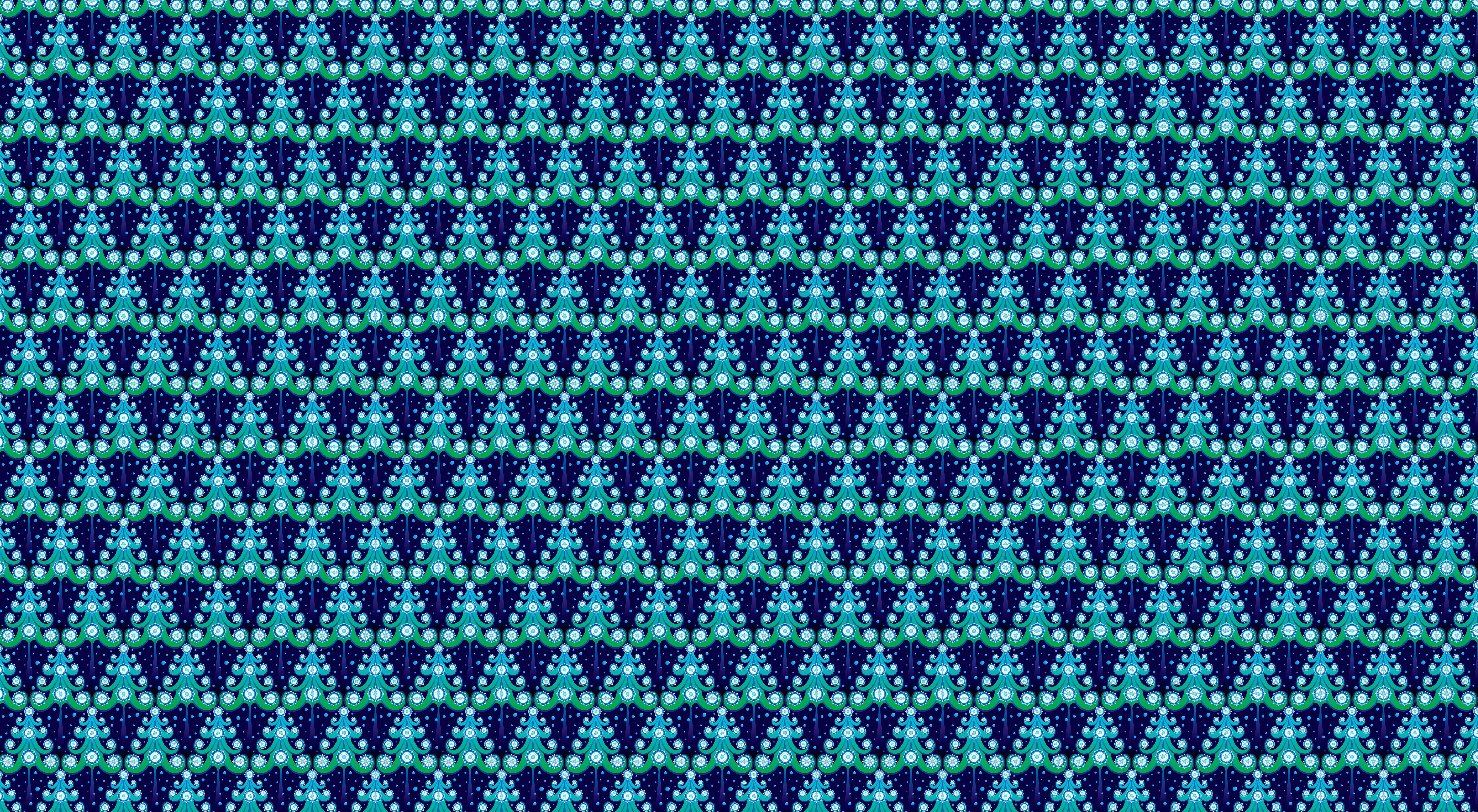 Description: A blue and green background with a pattern of small figures on it's side.