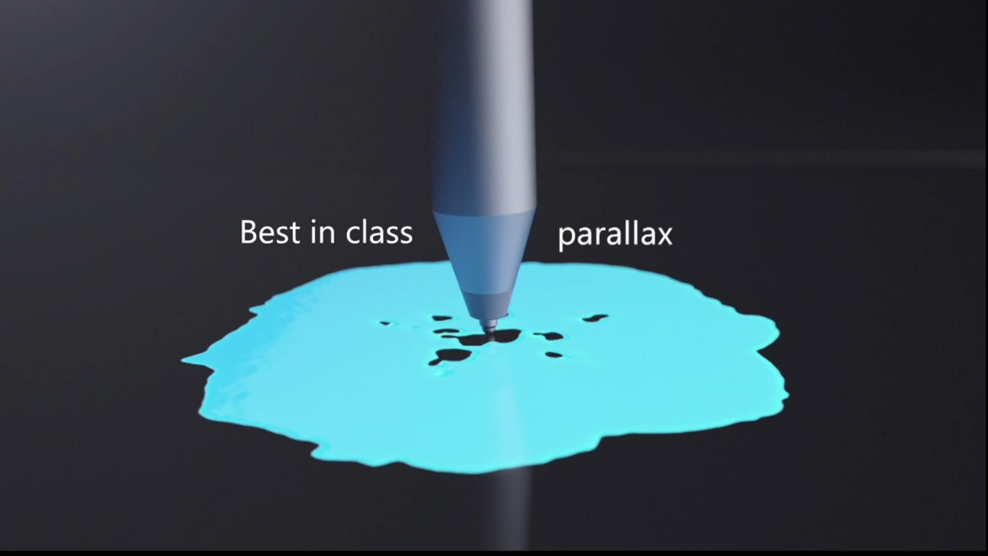 Description: A blue ink pen is being used to write the word best in class and parallax on a black background.