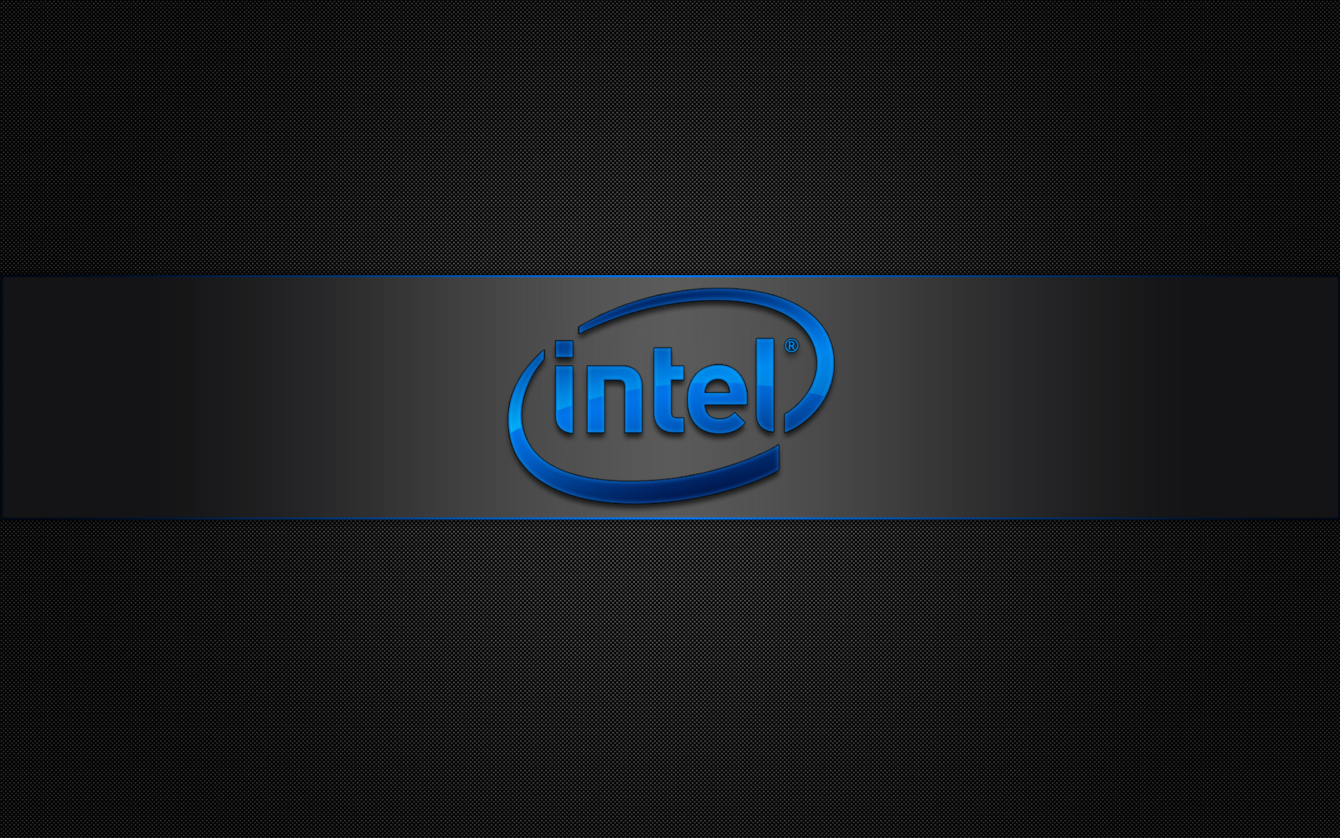Description: A blue intel logo on a black background with a blue stripe around it and a black stripe around the bottom of the logo.