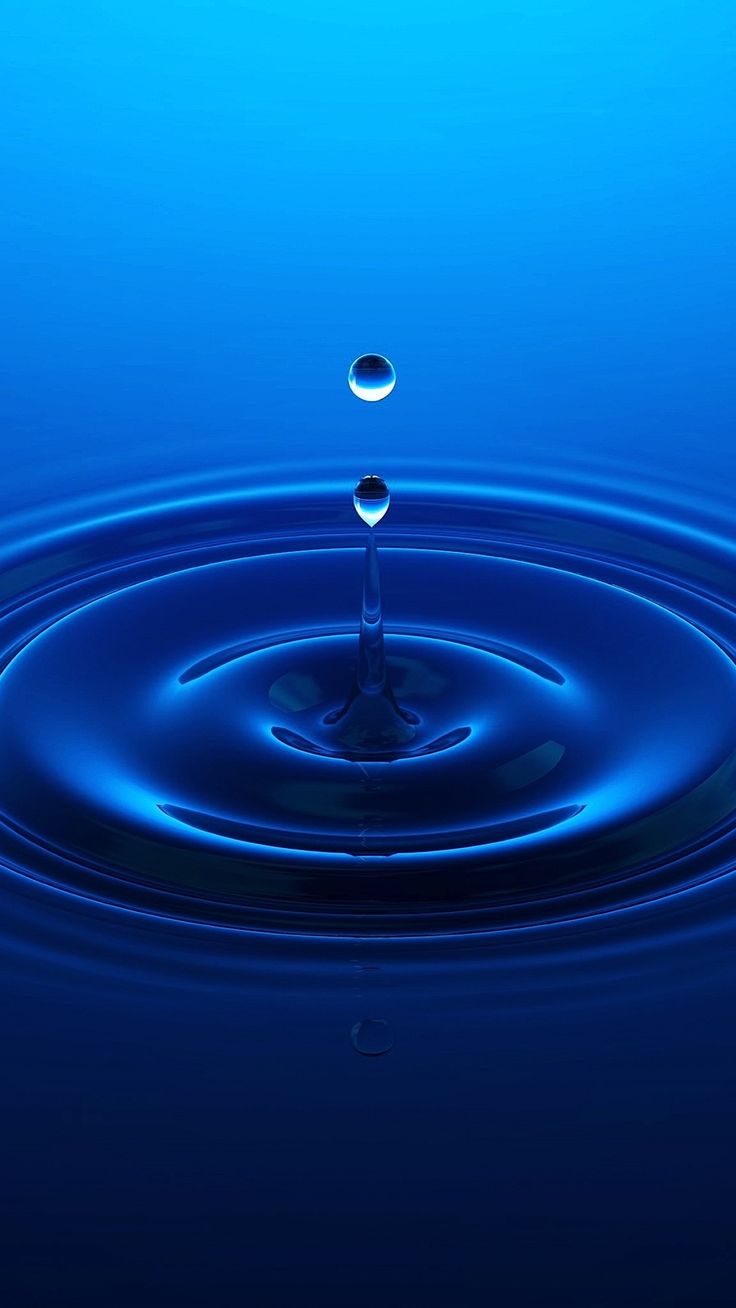 Description: A blue liquid droplet is seen in the water with a blue background and a droplet is seen above the water.