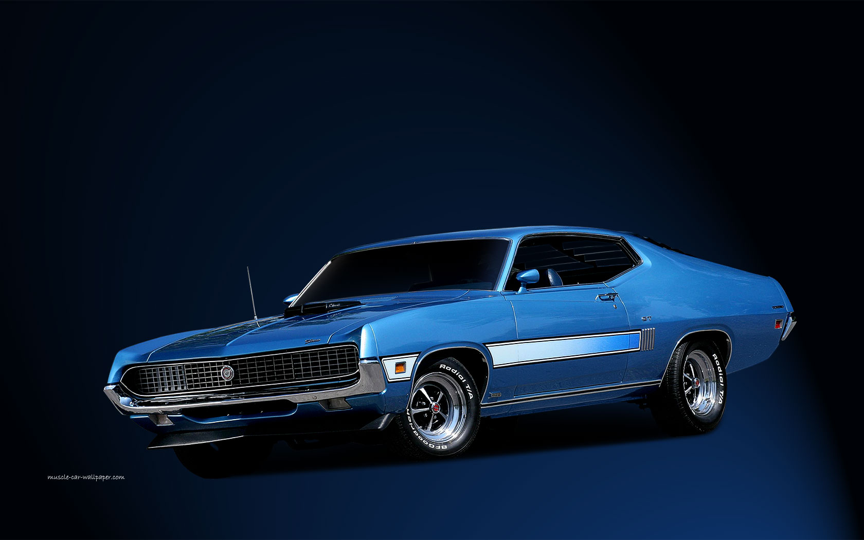 Description: A blue muscle car is shown in a dark background with a black background and a blue background with a black background.