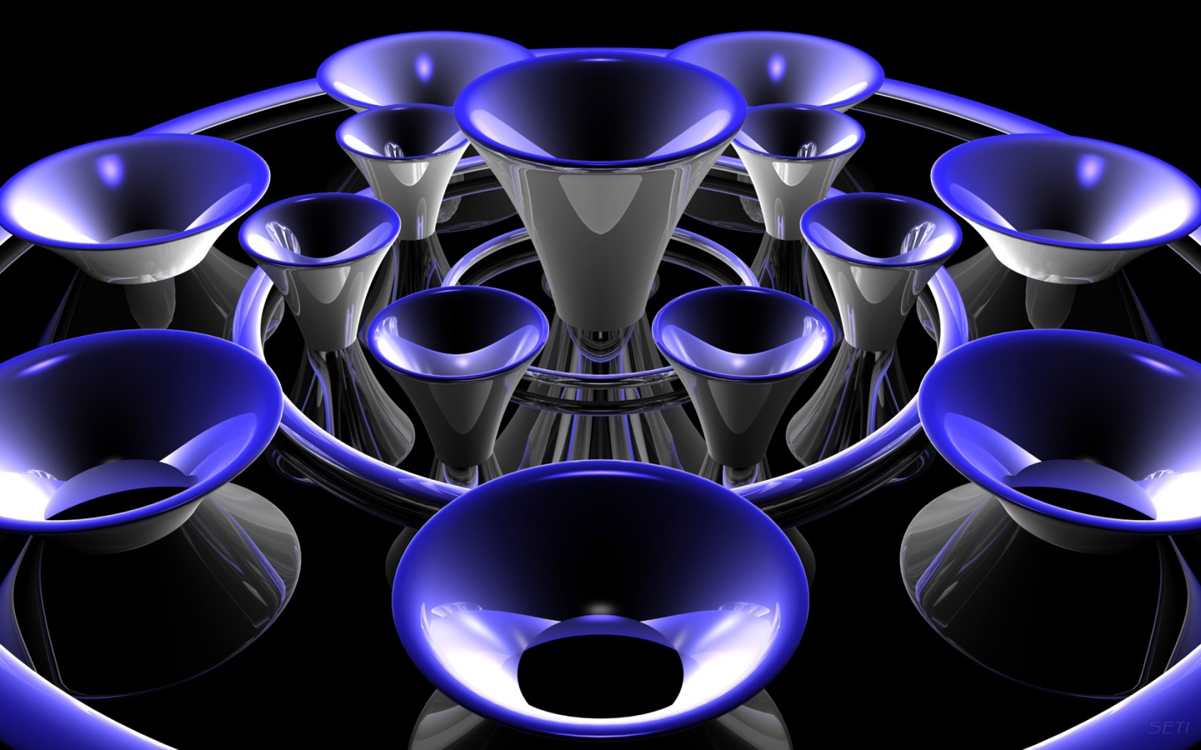 Description: A digital image of a bunch of blue objects in a circle of blue lights on a black background with a black background.