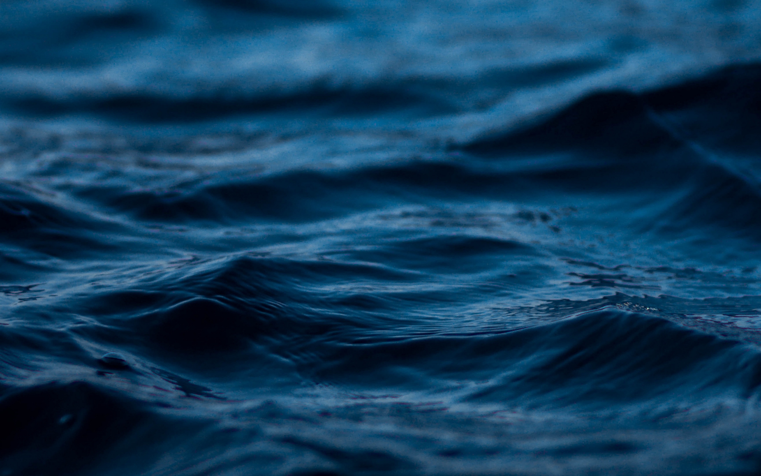 Description: A close up of a blue ocean with waves and a blurry background of water and land.