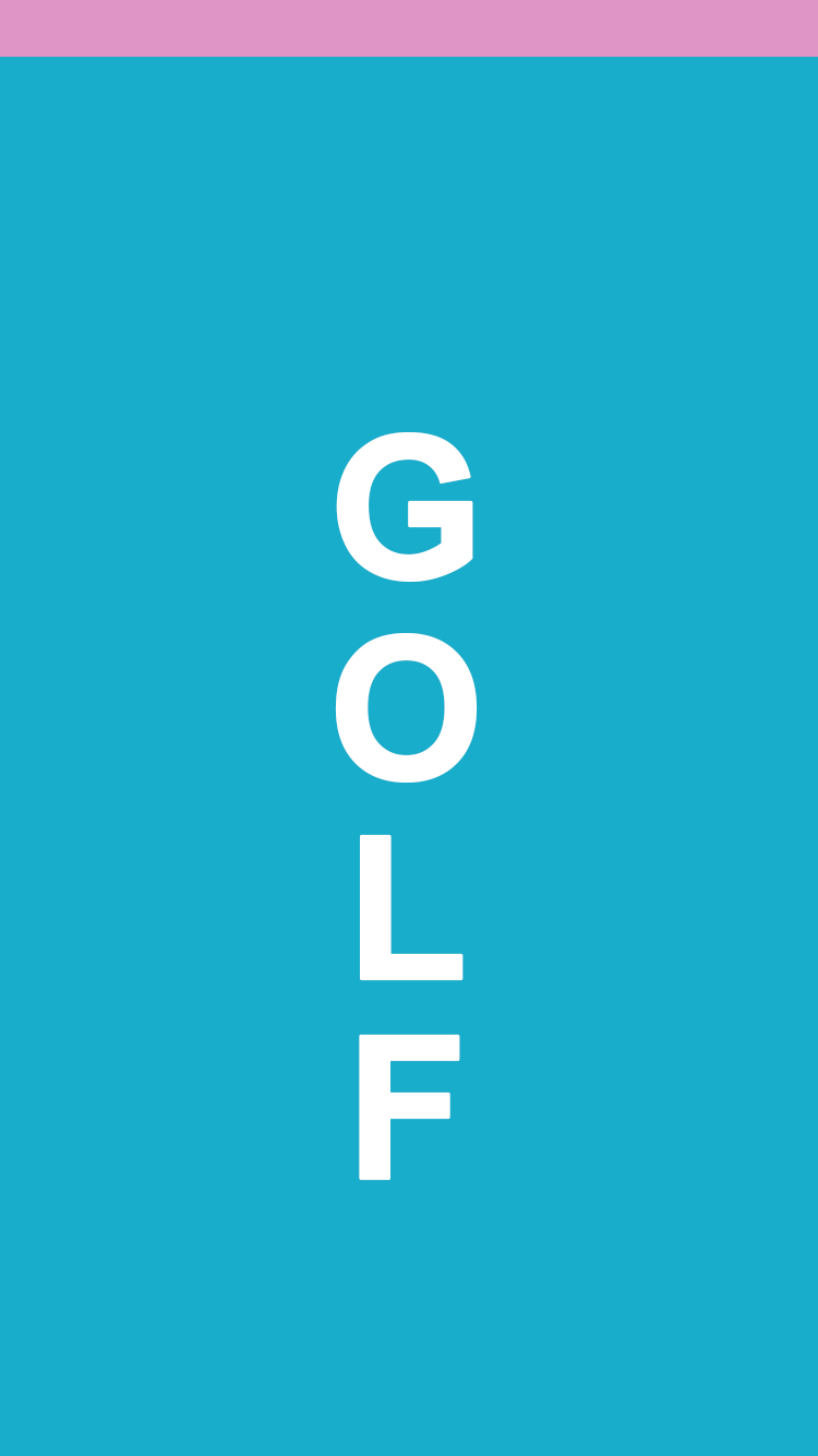 Description: A blue and pink square with the word golf on it's side and a pink border around the edges.
