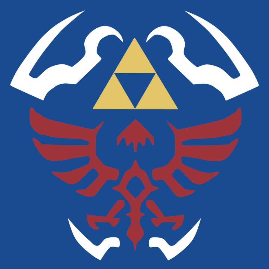 Description: A blue and red logo with a bird on it's chest and two arms.