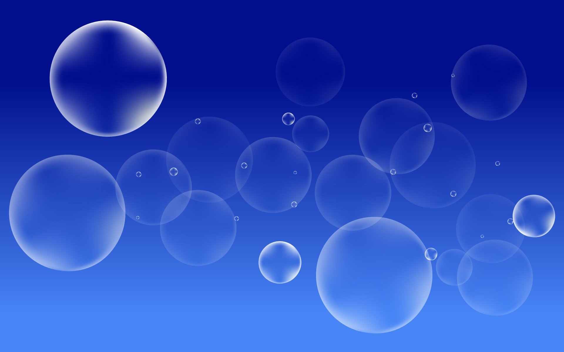 Description: A blue background with bubbles floating in the air and a blue sky in the background with a few white bubbles.