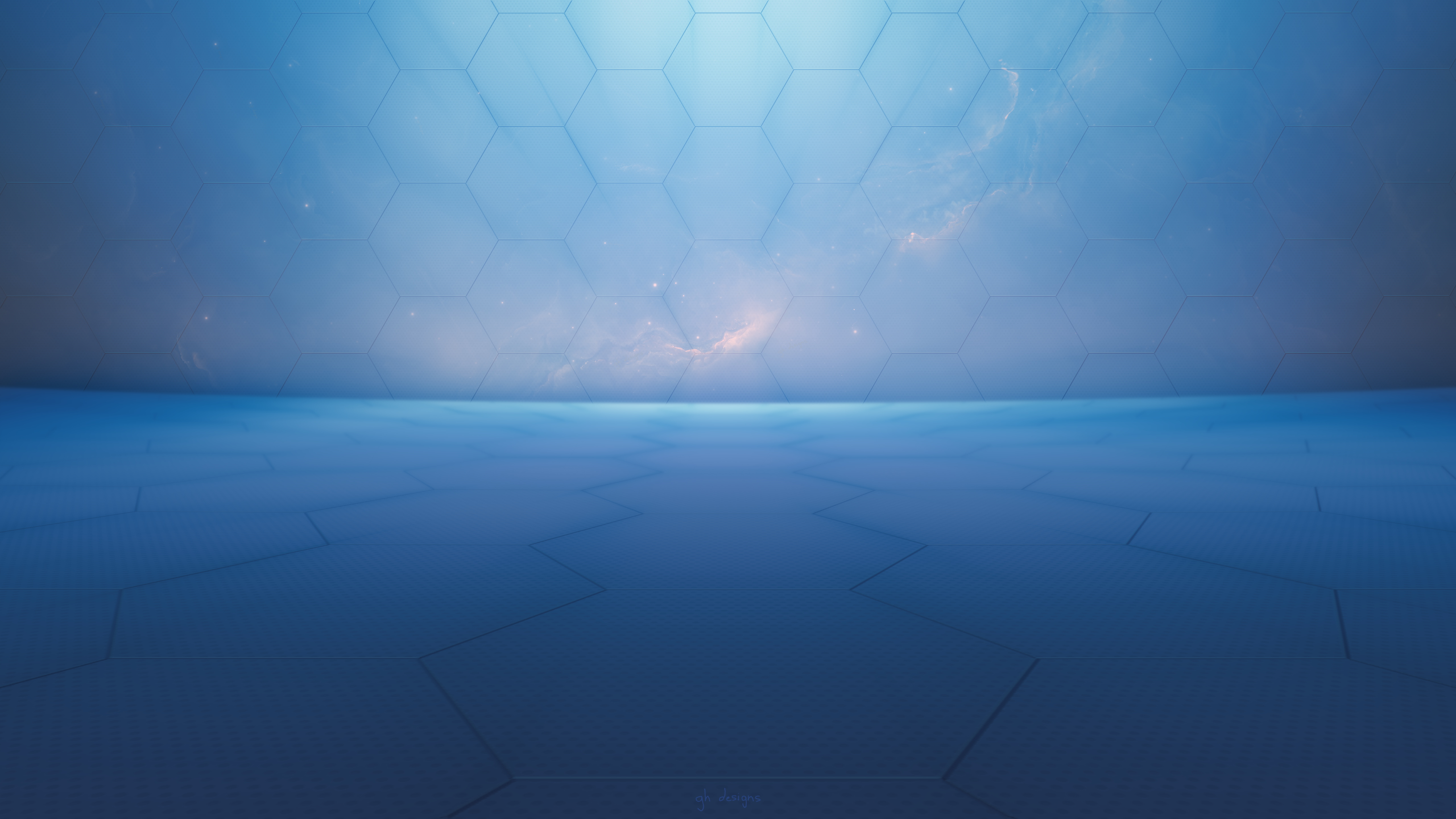 Description: A blue background with a blue sky and some clouds in the background and a blue floor with a blue light.