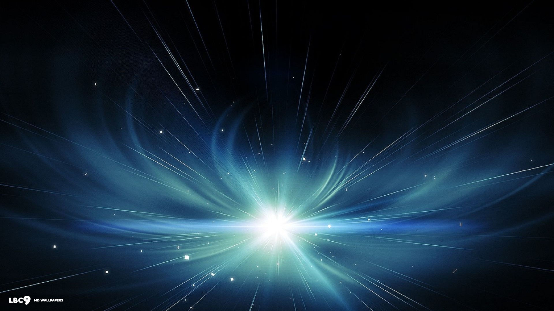 Description: A blue star burst with a black background and a white star in the center of the image is a bright blue star.