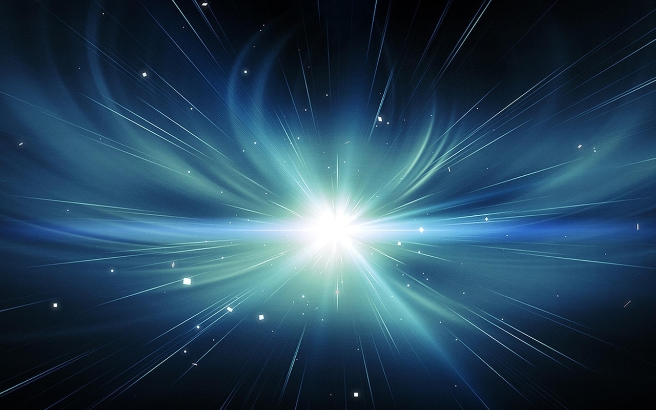 Description: A blue star burst with a black background and white stars in the center of the image.