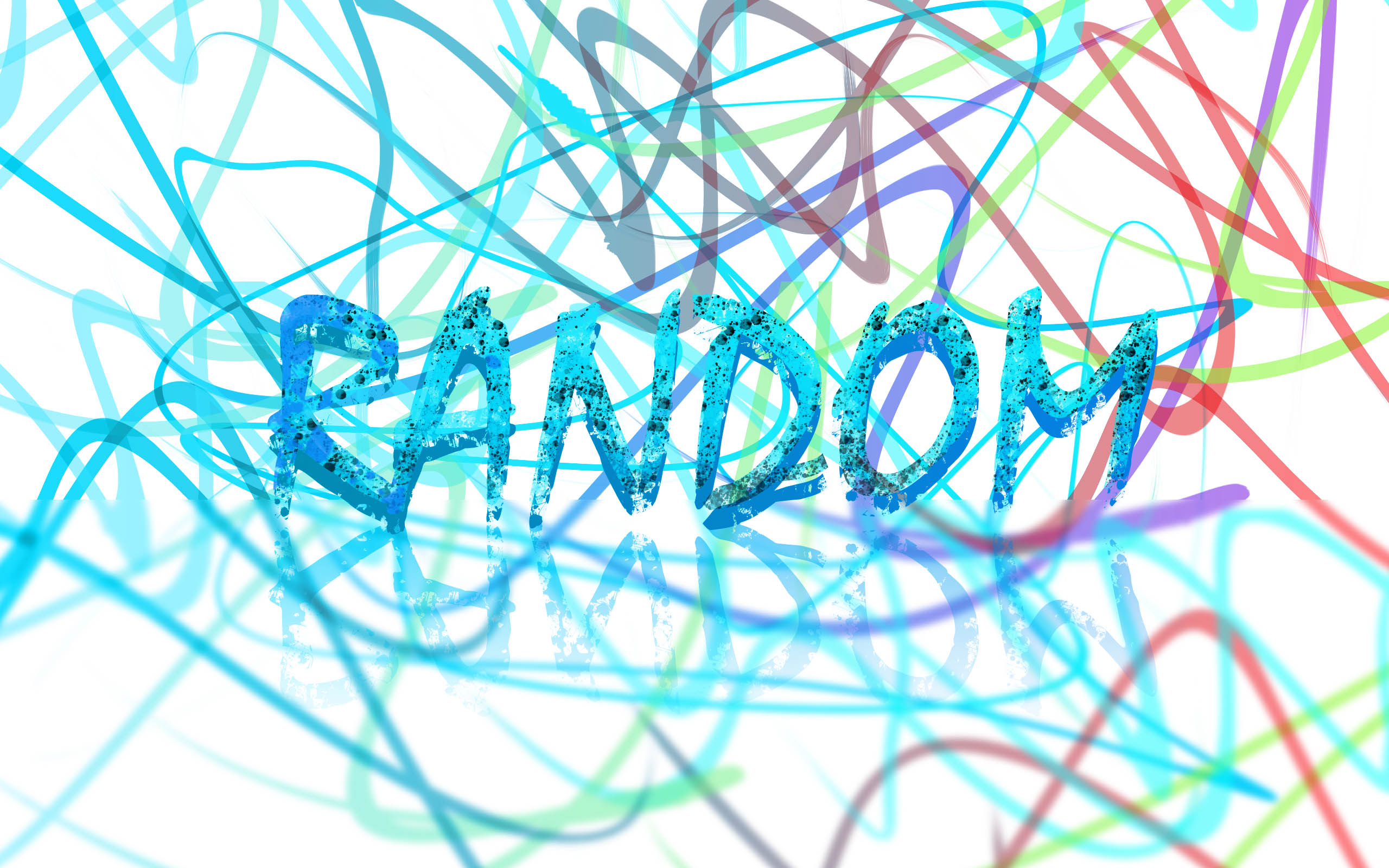Description: A blue word that is surrounded by lines and colors of different colors and shapes.
