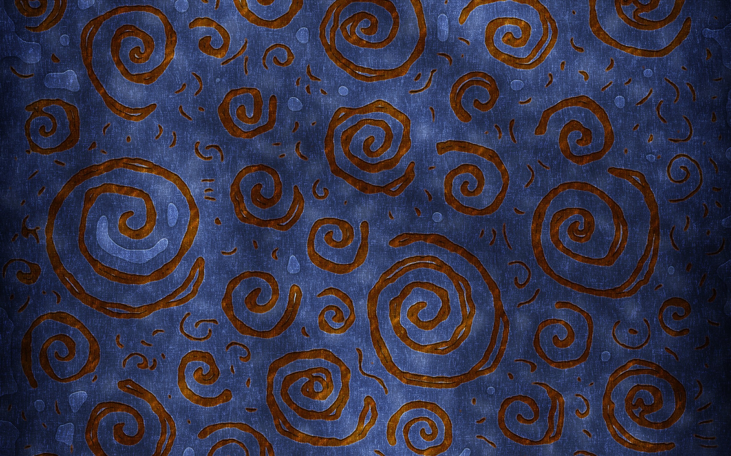 Description: A blue background with a pattern of swirls and dots on it.