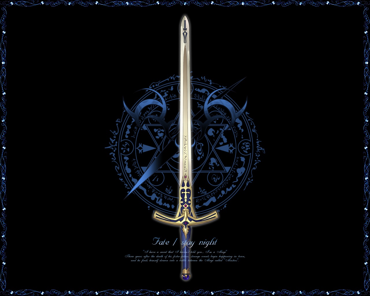Description: A sword with a blue design on it and a blue border around it on a black background with a blue border.