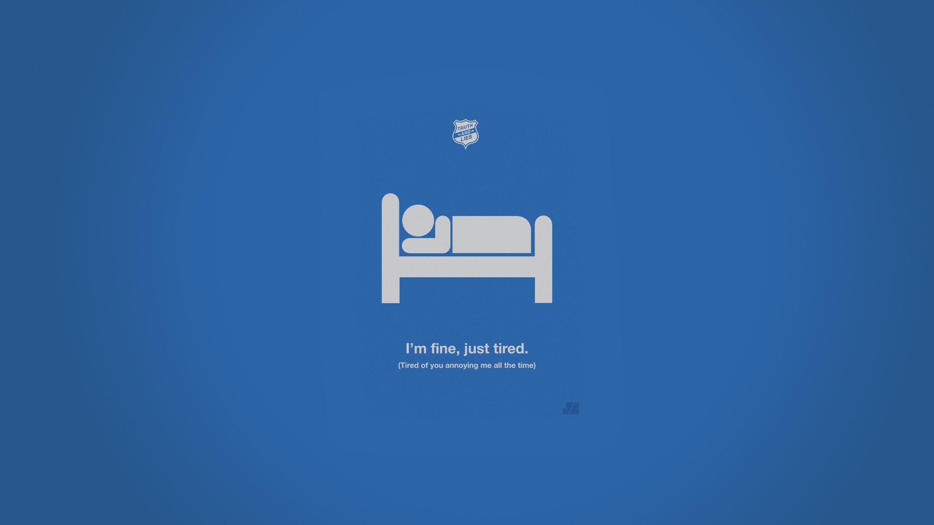 Description: A blue wall with a bed and a person on it with a bird flying above it and a text below it.