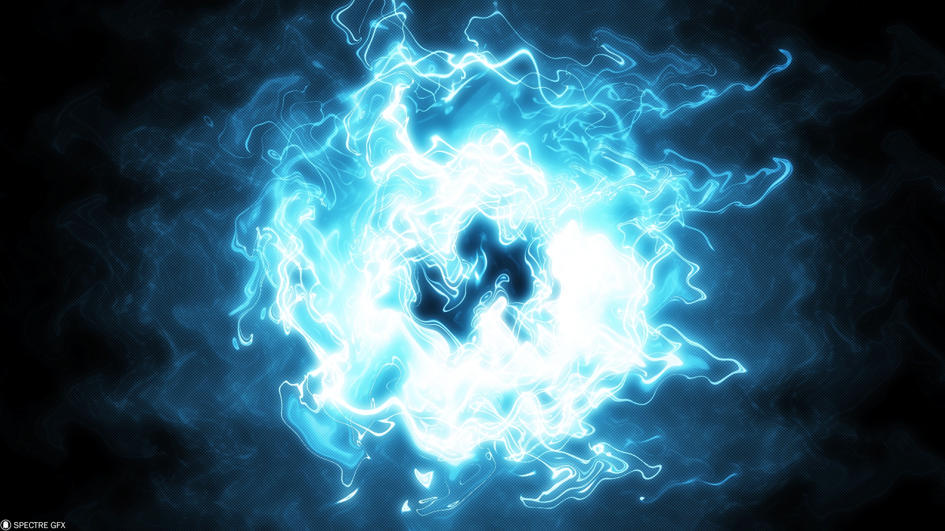 Description: A blue and white fireball with a skull on it's face and a black background with a white skull on it.