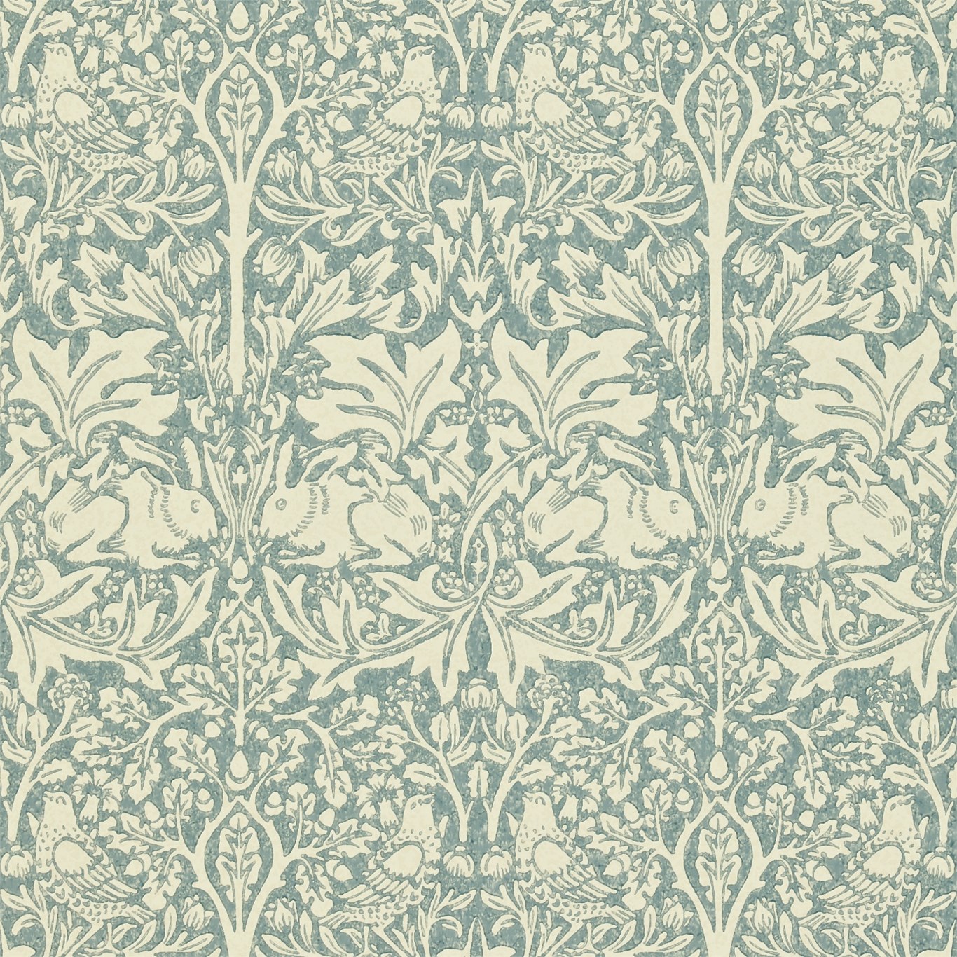 Description: A blue and white wallpaper with a floral design on it's side and a bird on the side.