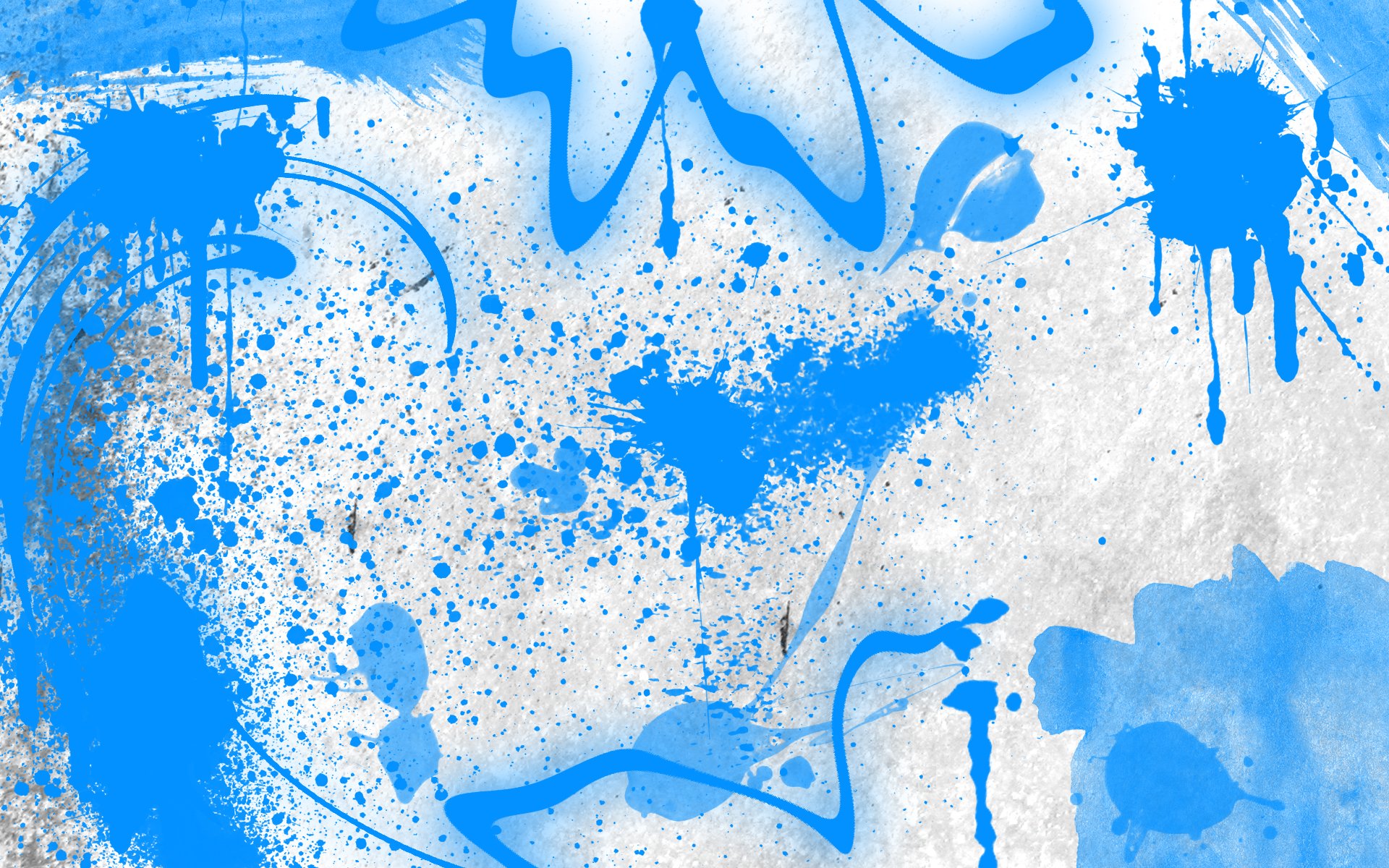 Description: A blue and white painting with blue paint splatters on it and a white background with blue paint splatters.