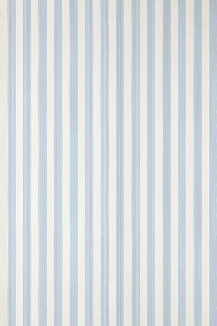 Description: A blue and white striped wallpaper with a white background and a white stripe pattern on the wall of a room.