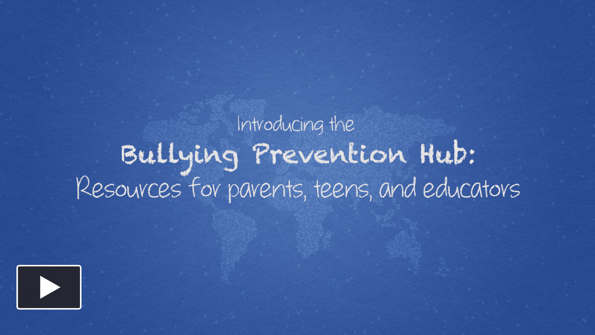 Description: A blue background with a world map and words describing bullying and bullying in the background is a white text that reads.