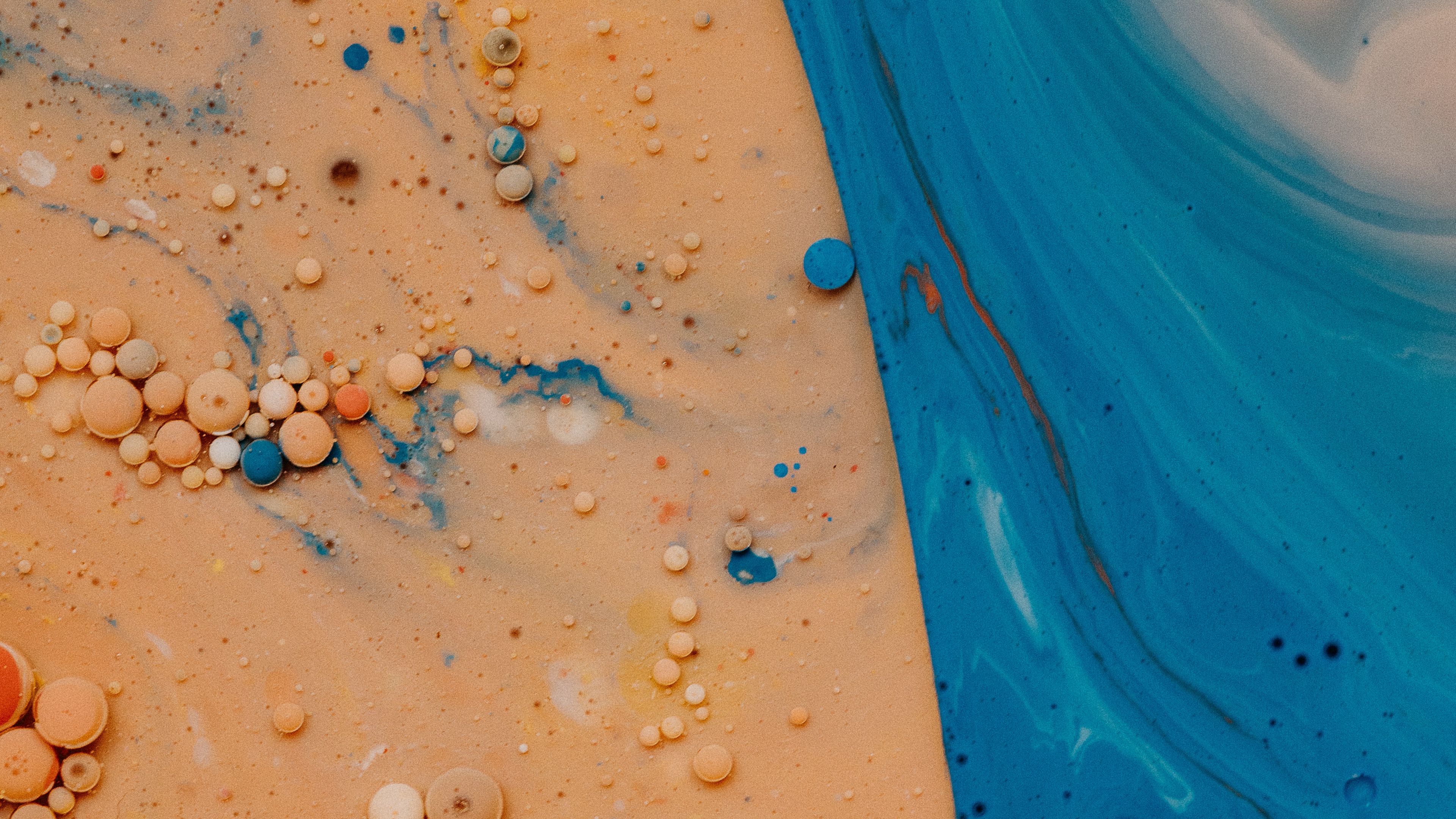 Description: A blue and yellow painting with different colors of paint on it and a blue and white painting with different colors of paint on it.