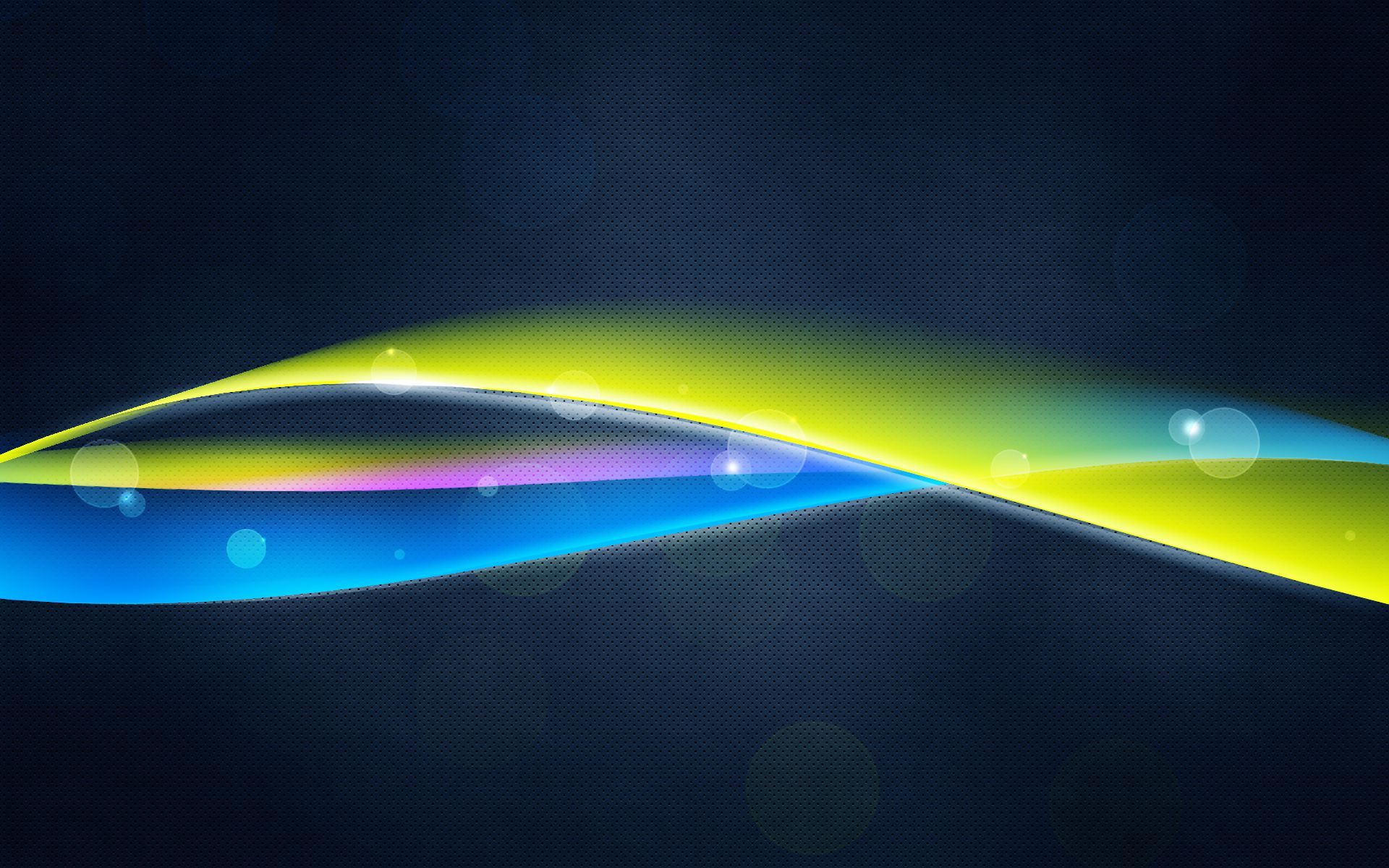 Description: A blue and yellow abstract background with a bright wave of light coming out of it's center and a black background with a blue and yellow stripe.