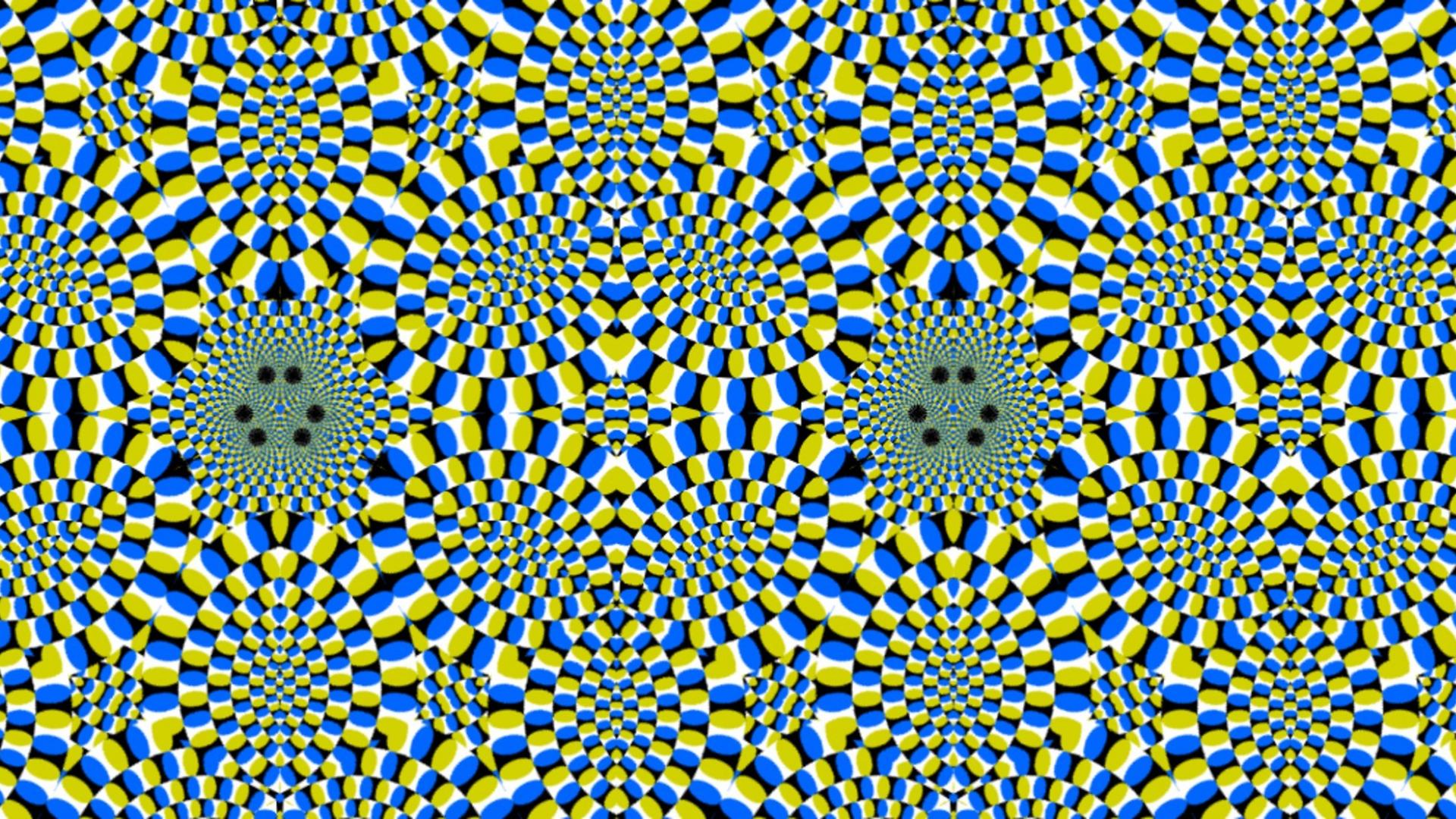Description: A computer generated image of a blue and yellow pattern with a black dot in the center of the image.