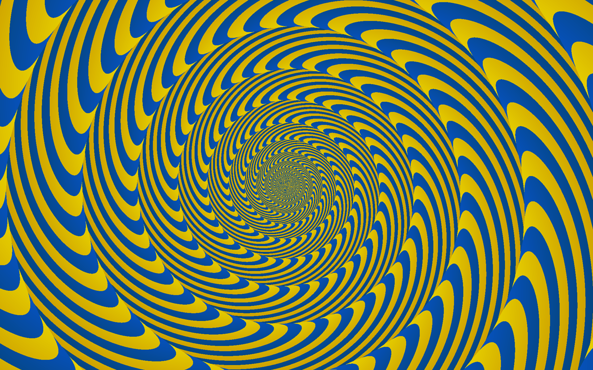 Description: A blue and yellow swirl with a green center in the middle of it.