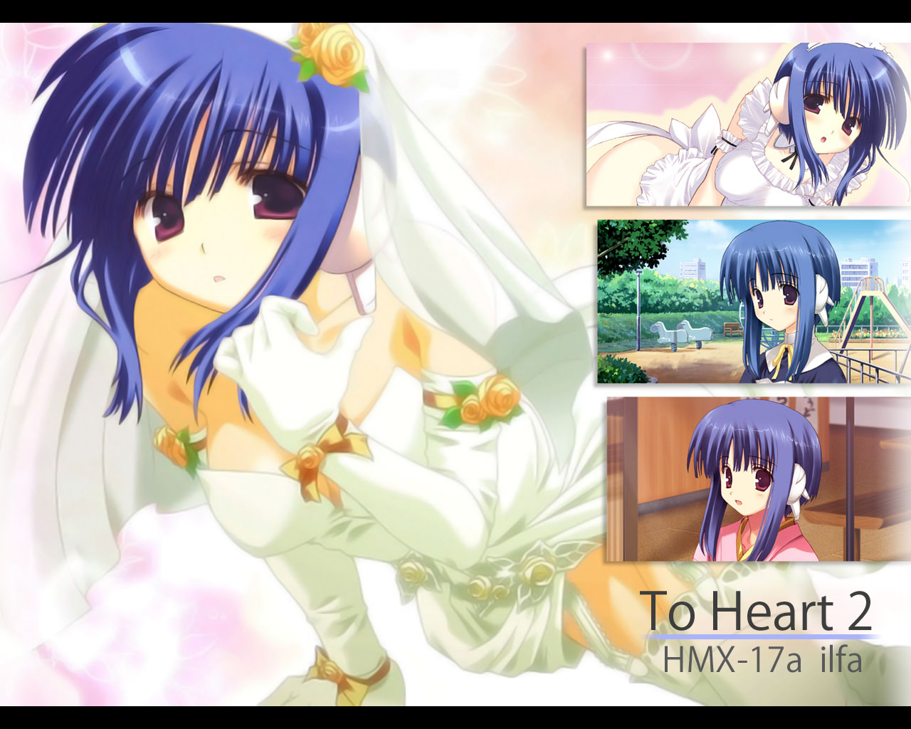 Description: A girl with blue hair and a veil on her head and a picture of her face and the words to heart 2.