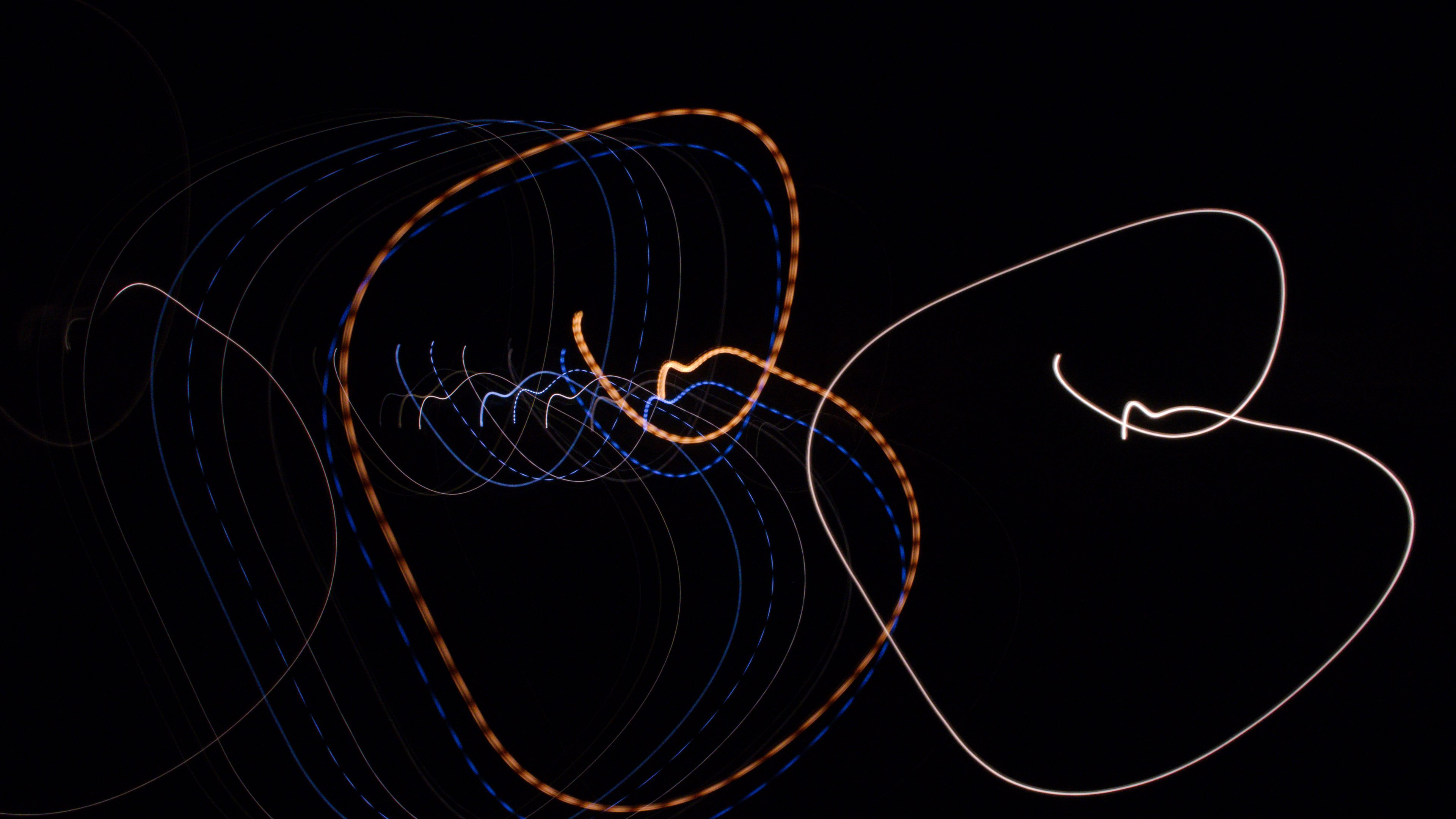 Description: A blurry photo of a black background with a blue and orange swirl and a white swirl and a black background with a blue and orange swirl.