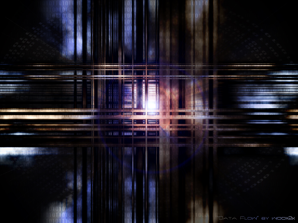 Description: A blurry image of a building with a light shining through it's windows and a reflection of the building.