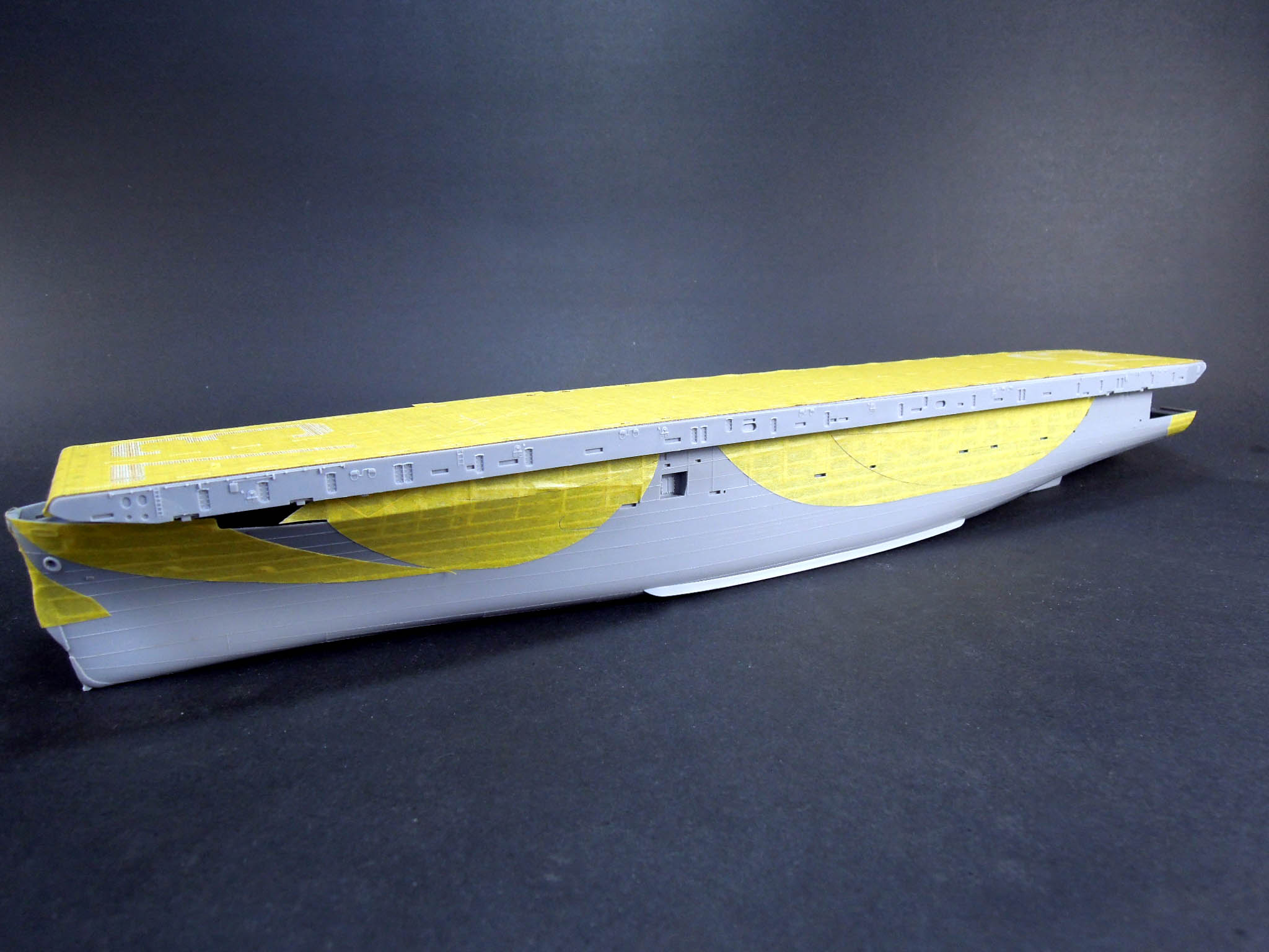 Description: A model of a boat with a ruler on it's side and a ruler on the side of the boat.