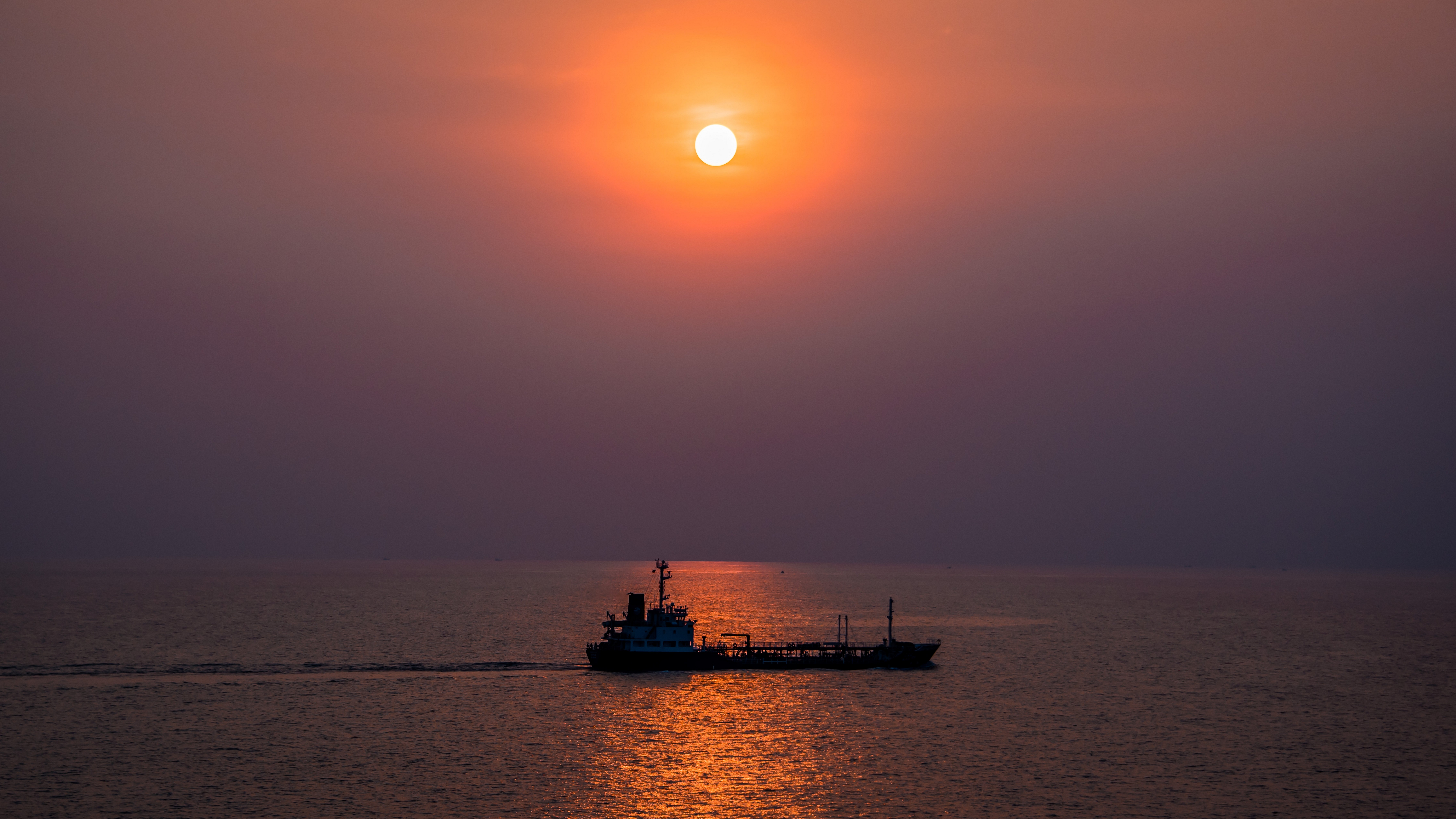 Description: A boat is sailing in the ocean at sunset time with the sun in the sky above the water and the sun in the sky.