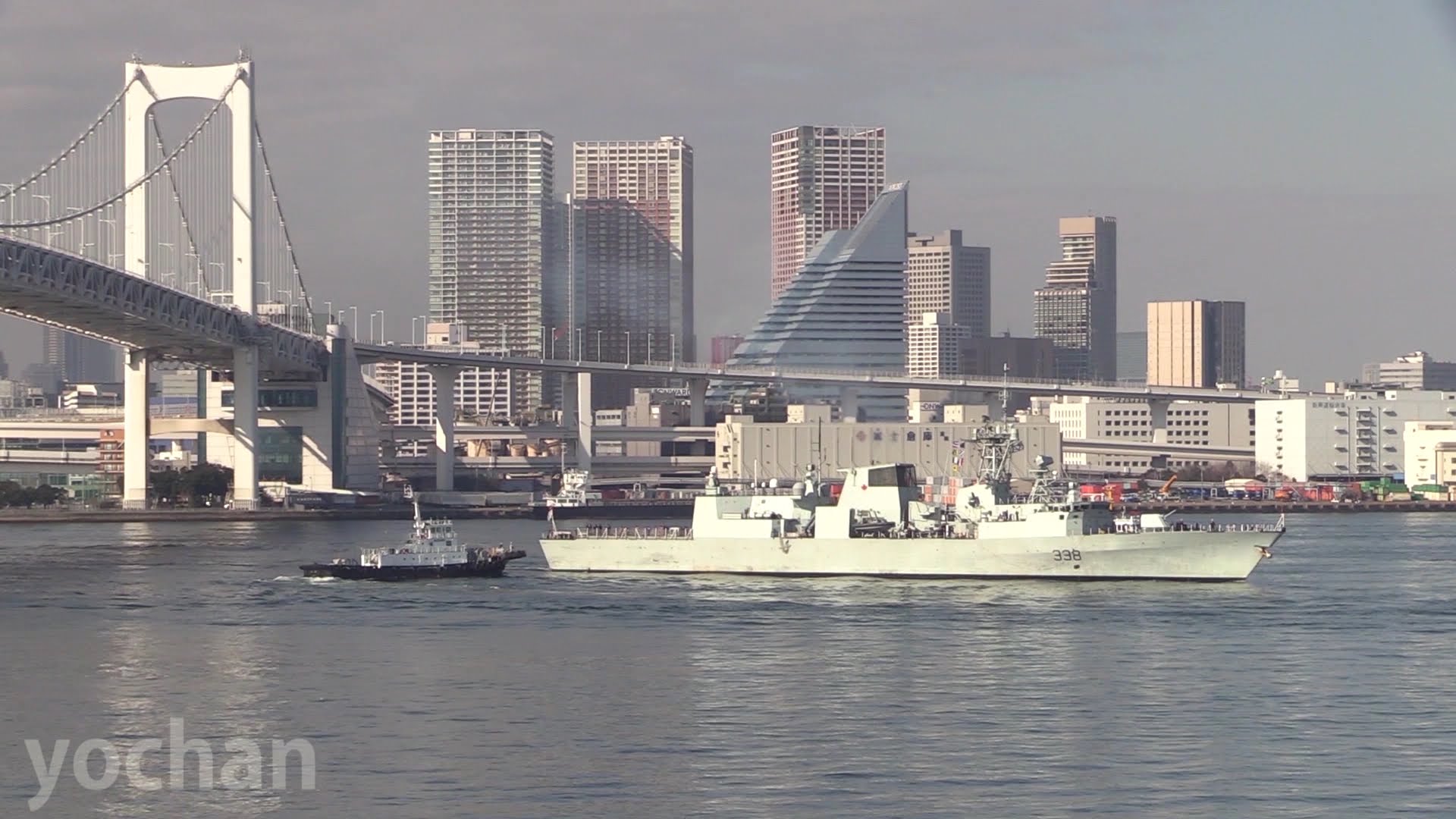 Description: A boat is in the water near a bridge and a city in the background with a bridge in the foreground.