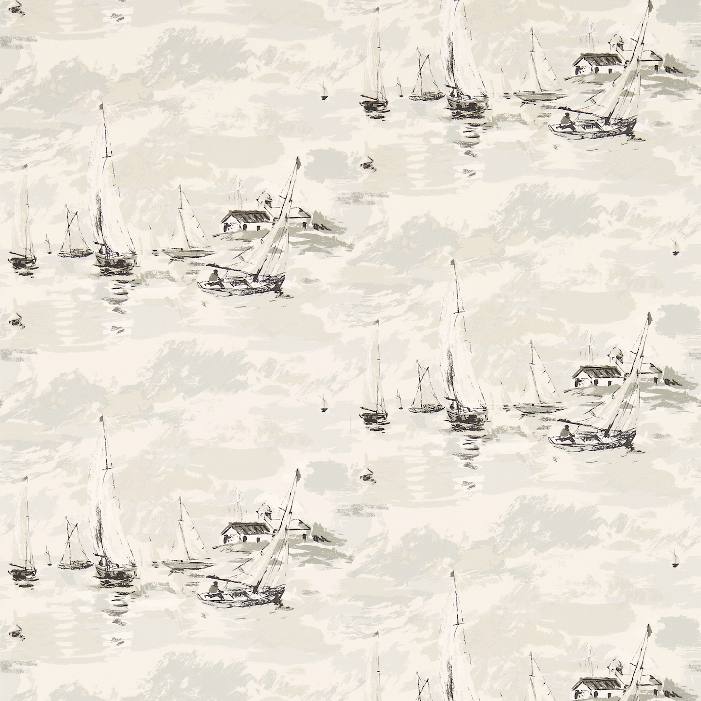 Description: A wallpaper with boats in the water and a sky background with clouds in the background and a house in the distance.