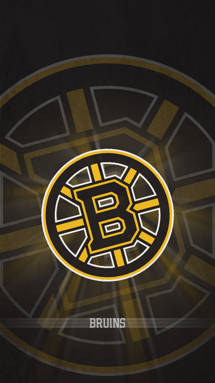 Description: A boston hockey logo on a black background with a yellow stripe around it and the word.